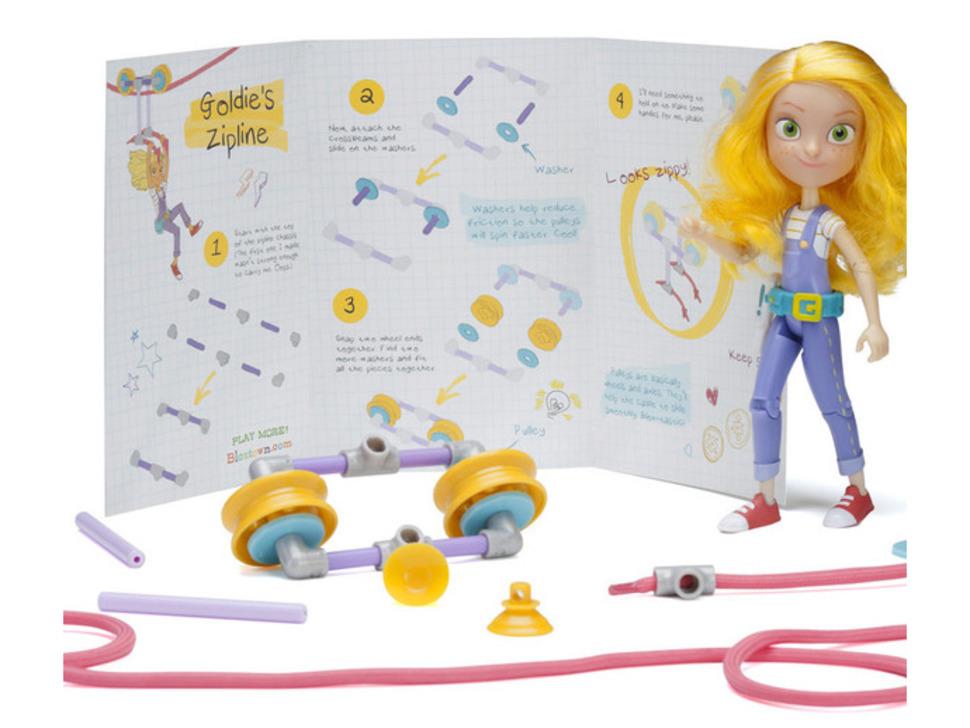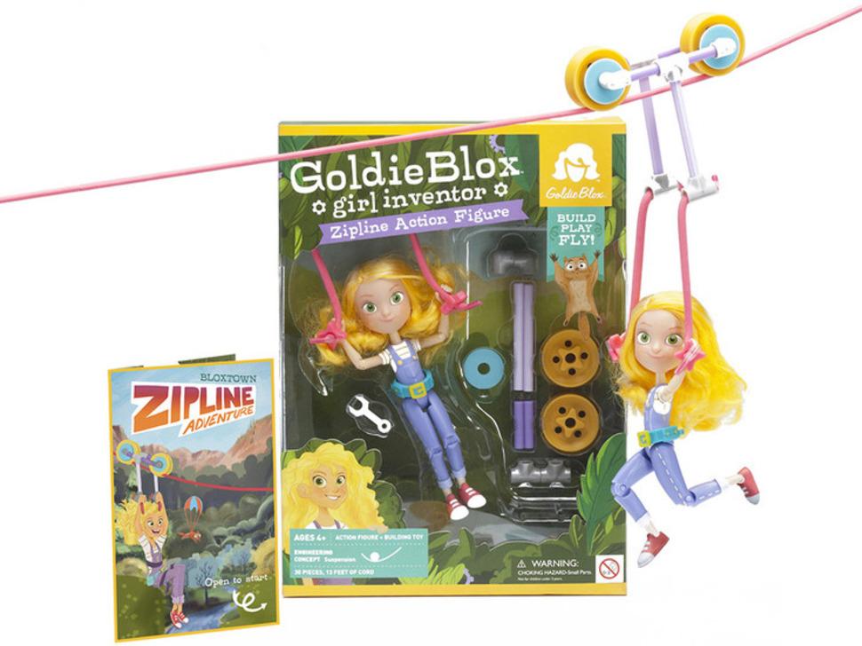De GoldieBlox Action Figure met Zipline-kit verandert speeltijd in een spannend avontuur. Goldie heeft beweegbare schouders, ellebogen, HIPS en knieën, waardoor ze volledig beweegbaar is en klaar voor elke uitdaging.