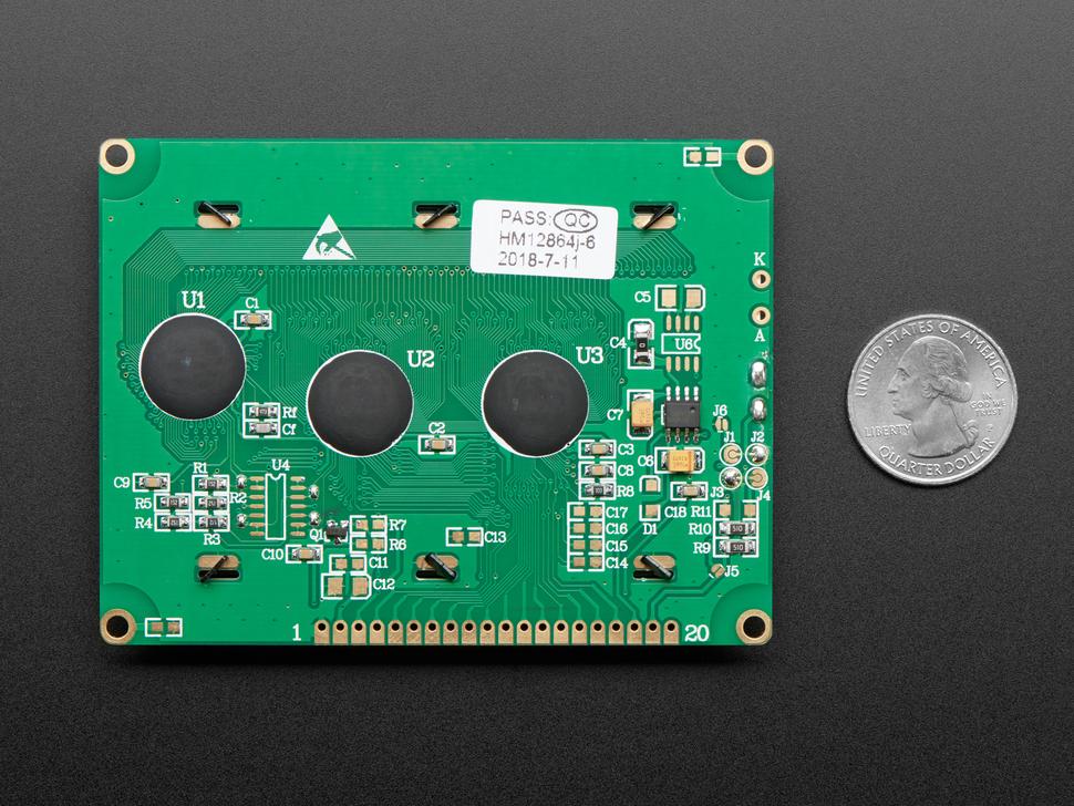 Een groot, opvallend, prachtig blauw LCD-scherm met witte achtergrondverlichte pixels biedt een verbluffende visuele ervaring. Dit LCD-scherm is de grafische upgrade van populaire 16x2 LCD's en biedt volledige grafische controle met een blauwe achtergrond en 128 x 64 'monochroom' witte pixels.