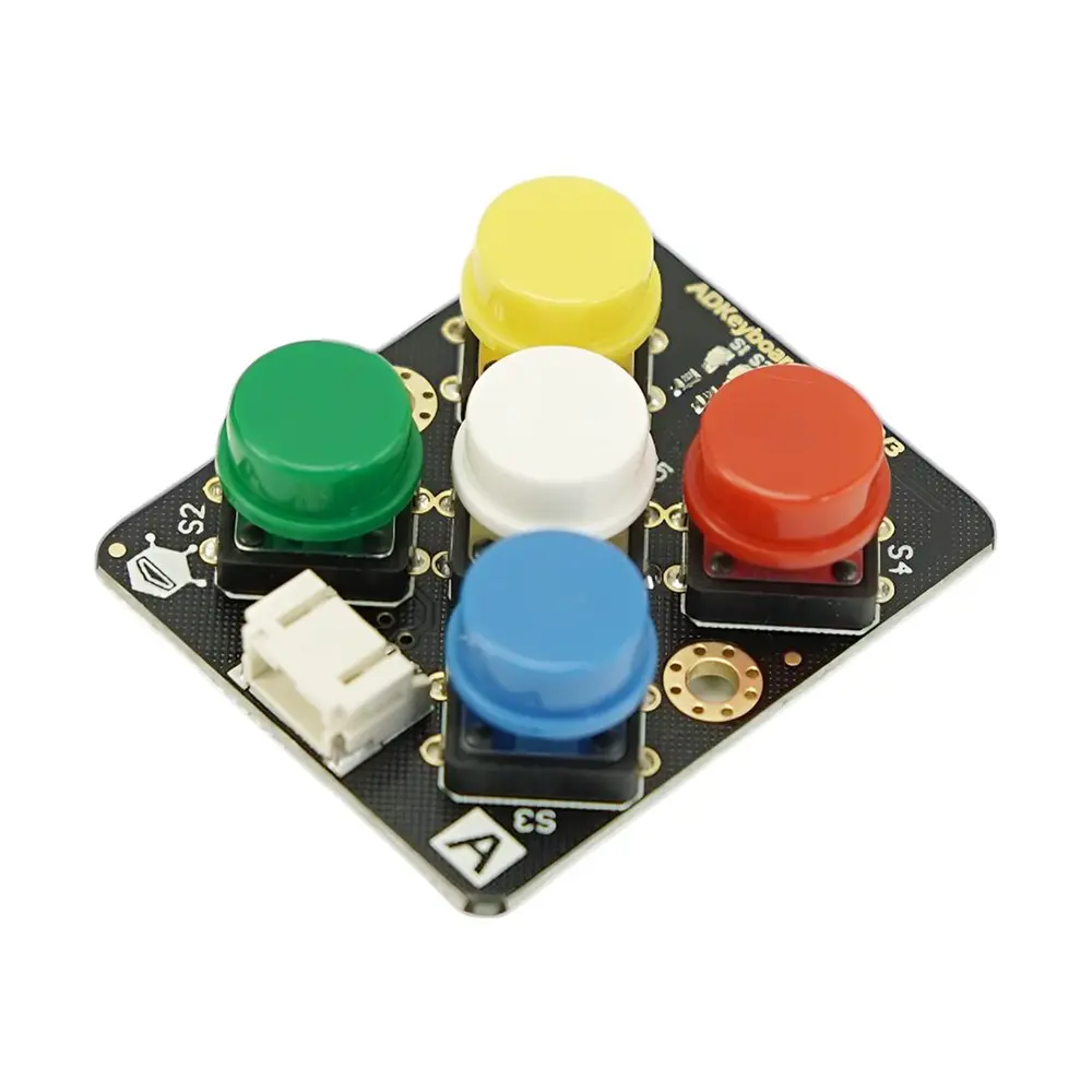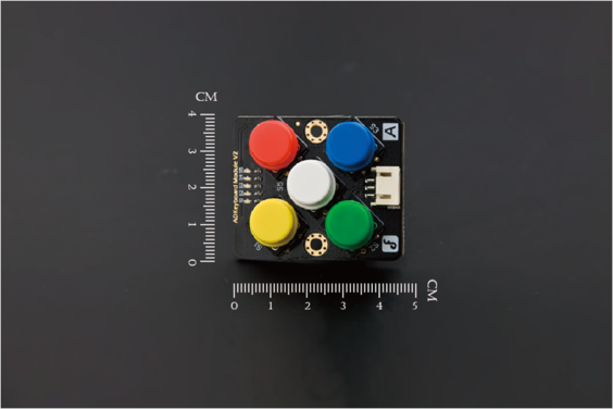Introduction This keyboard uses an analog input to read the five key state which saves IO resource for the Arduino. It can be used together with our I/O expansion boards to make amazing interactive project.