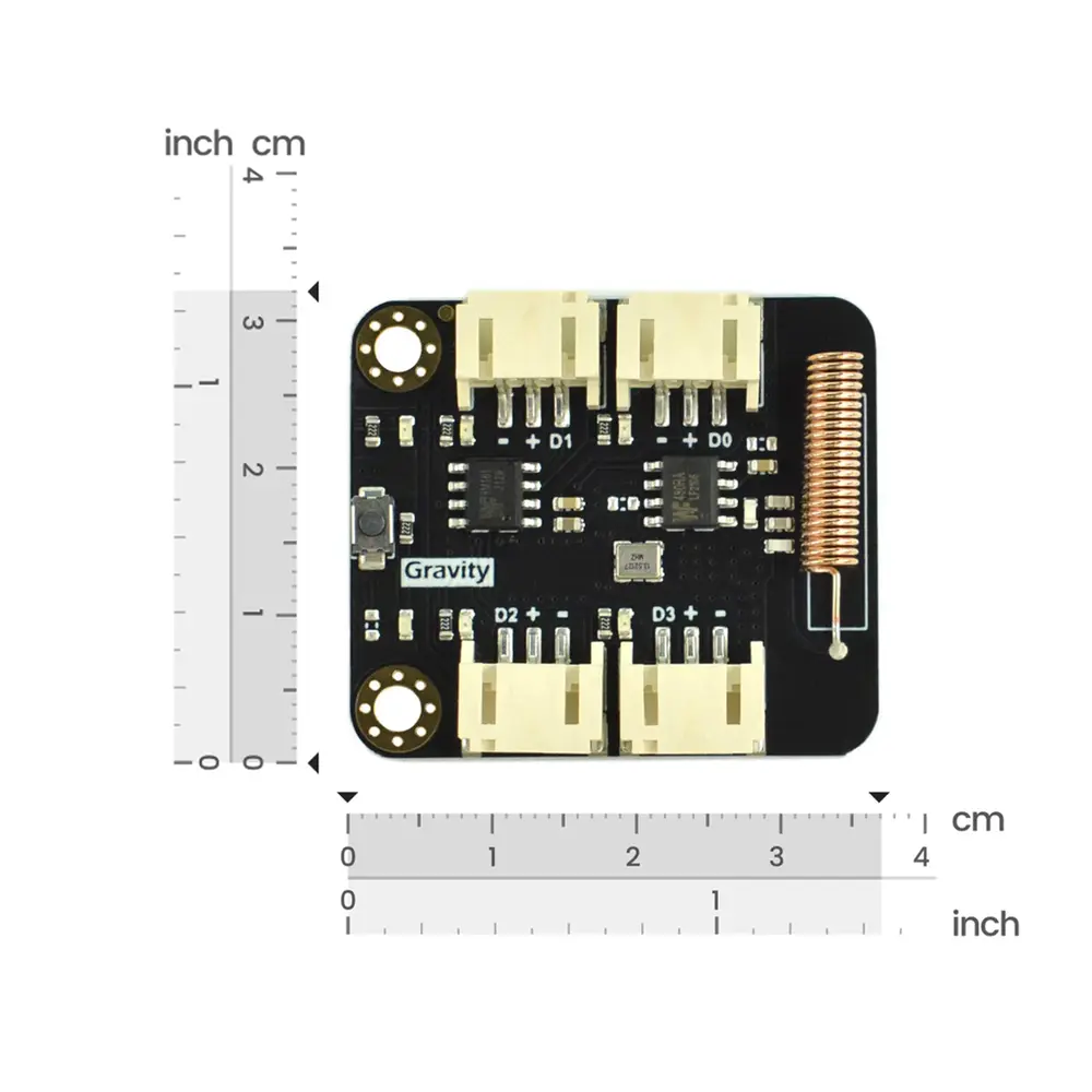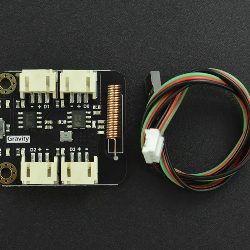 Het is belangrijk om te weten dat 433 MHz in de meeste regio's wereldwijd een certificeringsvrije frequentieband is, maar gebruikers dienen zich te houden aan de lokale beleidsregels en regelgeving met betrekking tot het gebruik ervan. Elke module wordt geleverd met één Gravity : digitale sensorkabel. Extra kabels kunnen afzonderlijk worden aangeschaft om uw projecten moeiteloos uit te breiden.