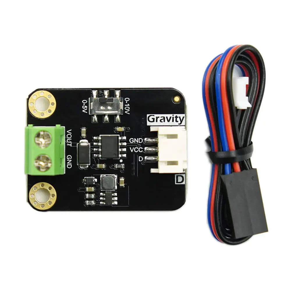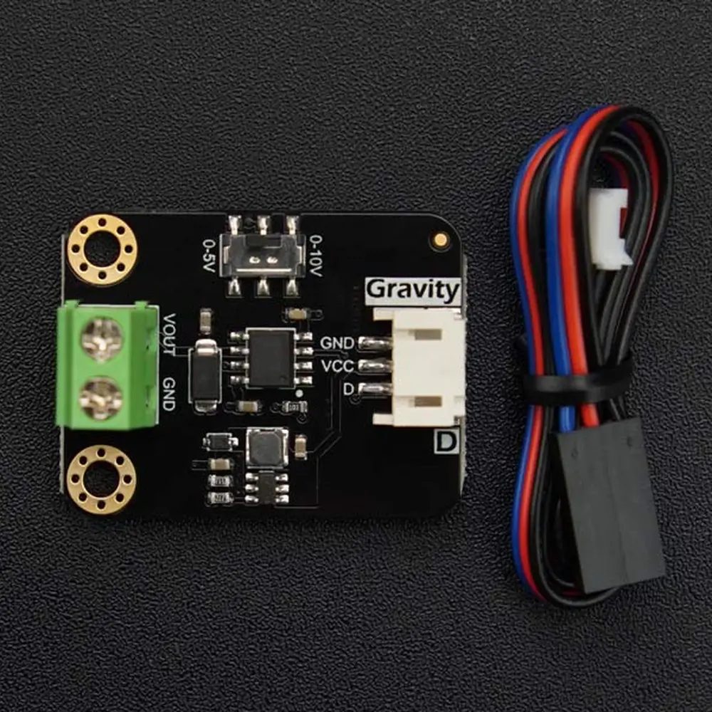 Deze 1-kanaals DAC-module maakt gebruik van PWM-communicatie om nauwkeurige analoge outputs te leveren met een resolutie van 8 bits en een nauwkeurigheid van 0,2%. Hij kan standaard outputs van 0-10 V of 0-5 V produceren, waardoor hij ideaal is voor automatiseringstoepassingen. Deze toepassingen omvatten scenario's zoals verlichtingsaanpassingen, het regelen van frequentieomvormers, het regelen van klepbedieningen en het beheren van pompsystemen. Door gebruik te maken van Arduino -programmering kan de module effectief elk apparaat aansturen dat werkt met de gangbare 0-10 V of 0-5 V-regelaars.