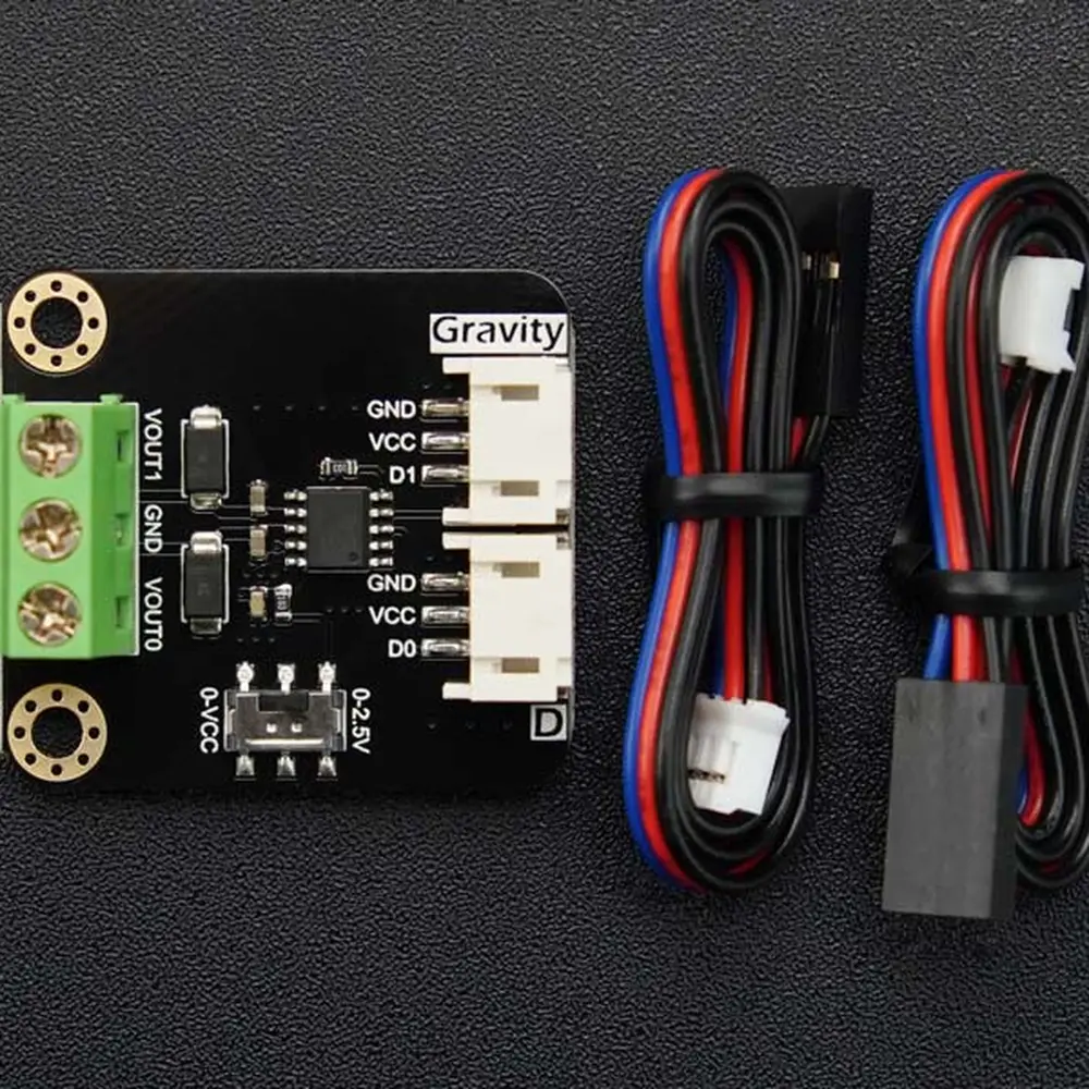 Deze DAC-serie biedt veelzijdige signaalgeneratie via I²C of PWM, waardoor gebruikers kunnen kiezen uit spannings- of output . Met drie resolutieopties – 8-bits, 12-bits en 15-bits – beschikken gebruikers over nauwkeurige controle. Bovendien ondersteunen deze modules zowel single- als dual-channel configuraties, met cascademogelijkheden voor uitbreiding naar multi-channel output .