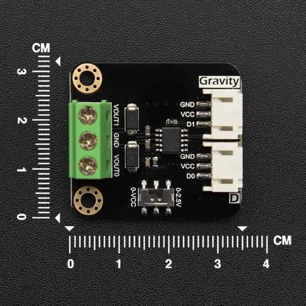 Deze 2-kanaals analoge DAC-module met PWM-communicatie en output is ontworpen met een resolutie van 8 bits en een nauwkeurigheid van 0,5%. Hij blinkt uit in besturingsprojecten binnen het 3,3V-bereik en werkt naadloos samen met systemen zoals de ESP32, Raspberry Pi , STM32 en andere microcontrollers die een geavanceerde analoge output nodig hebben.