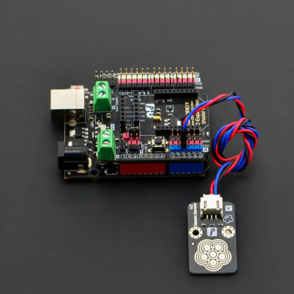 De DFRobot stoomsensor biedt naadloze integratie met het Arduino IO- shield en biedt een optimale oplossing voor het detecteren van veranderingen in de luchtvochtigheid. De kernfunctie is eenvoudig maar efficiënt: naarmate de luchtvochtigheid op het sensoroppervlak stijgt, neemt de output evenredig toe. Deze functie maakt nauwkeurige monitoring en aanpassingen in diverse toepassingen mogelijk, zodat gebruikers kunnen vertrouwen op nauwkeurige luchtvochtigheidsmetingen.