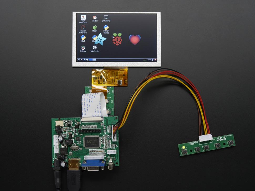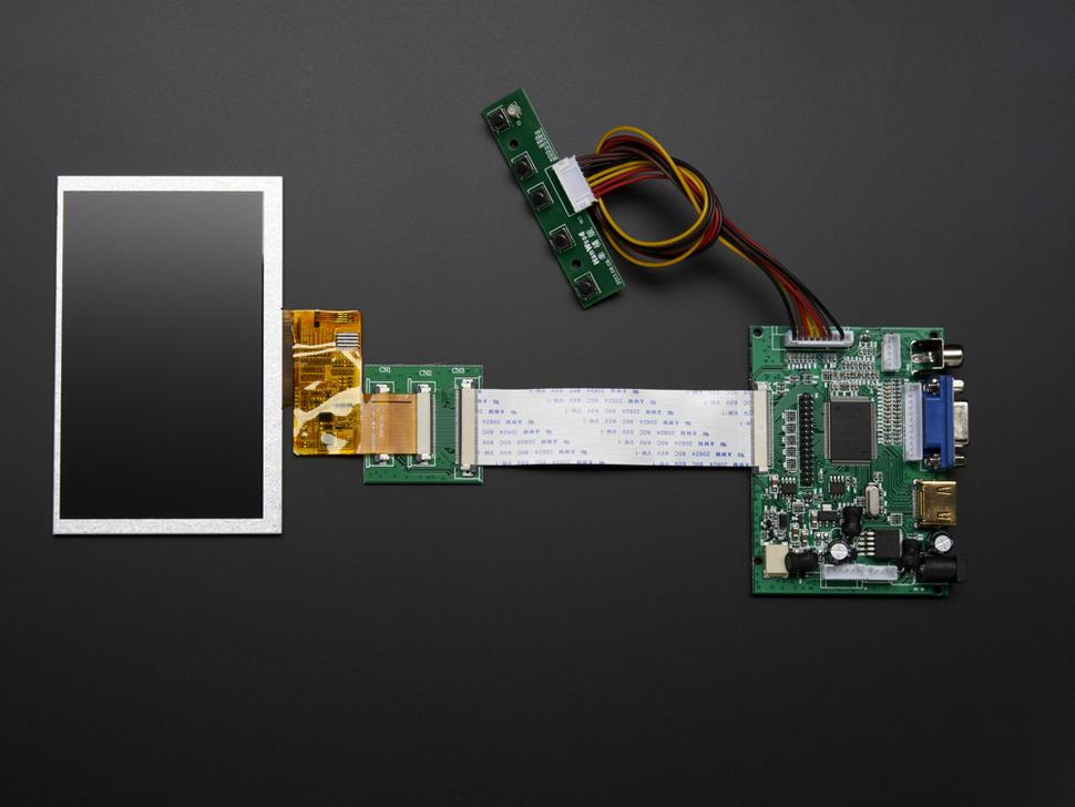 Adafruit HDMI 4 Pi 5" display geen touchscreen 800x480 - HDMI/VGA/NTSC/PAL