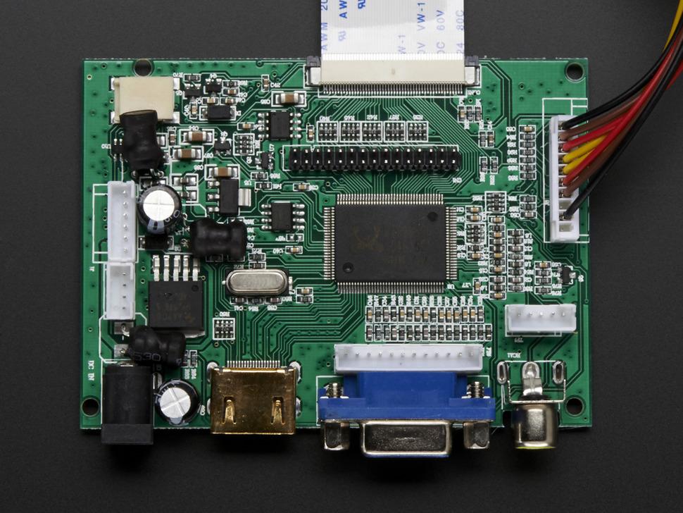 Het display ondersteunt HDMI-, VGA- en NTSC/PAL- output , maar vereist converters voor DVI. Een 10-inch FPC-kabel kan de meegeleverde 4-inch kabel vervangen voor meer flexibiliteit bij de installatie.