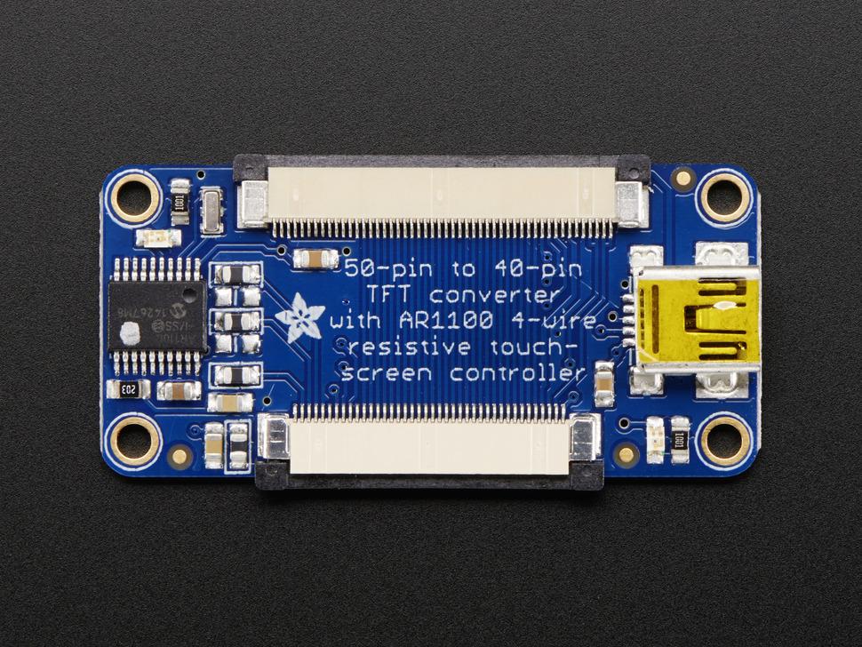 Belangrijkste kenmerken zijn onder andere een USB compatibele 40-pins naar 50-pins touchscreen-adapter en een 24-bits display . De adapter kan eenvoudig worden gevoed via een 5 tot 12V DC-adapter via een 2,1mm center-positieve DC-aansluiting.