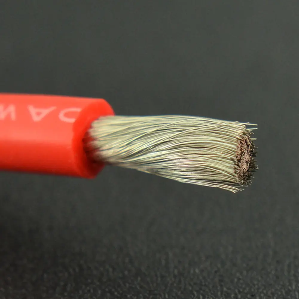 Deze hittebestendige siliconendraad is zorgvuldig vervaardigd met specificaties van 10AWG en 6mm², met fijn vertind koper dat oxidatie tegengaat. De gedraaide vorm vermindert signaalinterferentie aanzienlijk en verbetert de geleiding. De draad kan een indrukwekkende belastingsspanning van AC600V/DC3KV aan en ondersteunt een belastingsstroom tot 140A.