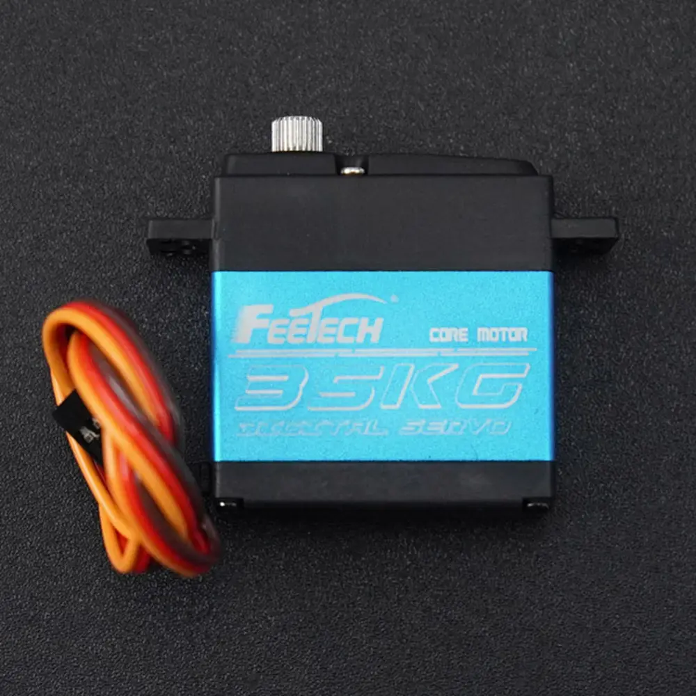 Dit is een waterdichte, kernloze digitale servo met hoog koppel, ontworpen met een robuuste metalen constructie. Het indrukwekkende koppel van 35 kg biedt nauwkeurige controle binnen een bereik van 180 graden. Verbeterd met een lineaire beweging, beschikt hij over een intern tandwielsysteem gemaakt van versterkte stalen tandwielen. Met een zorgvuldig geoptimaliseerde hart-op-hart afstand van 2,0 levert hij ongeëvenaarde prestaties voor uw projecten.