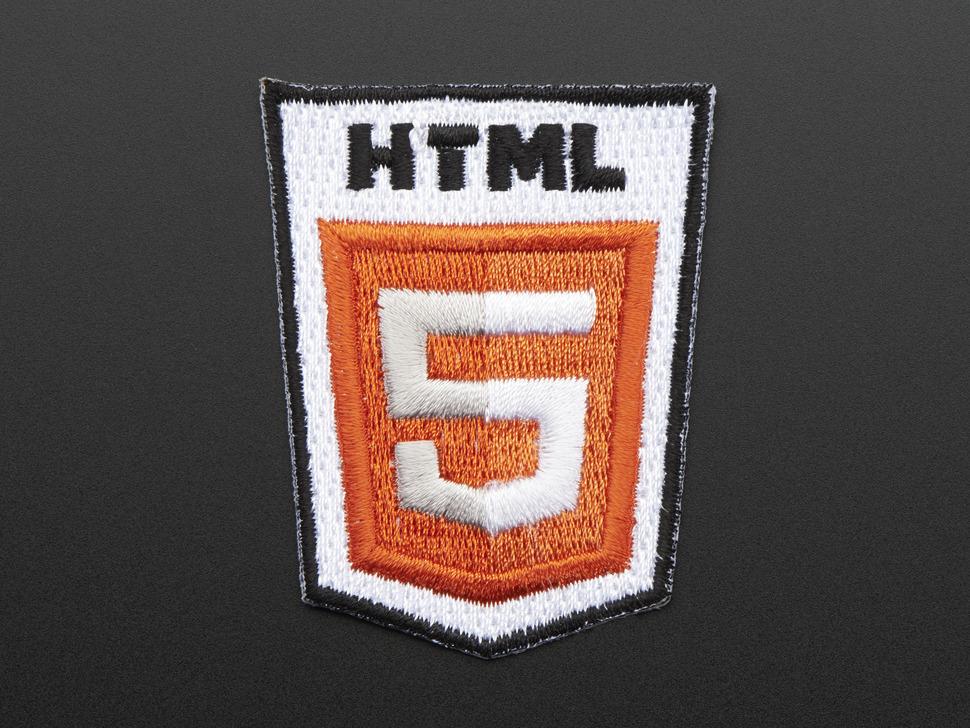 Deze prachtig vormgegeven "HTML 5"-badge symboliseert prestaties op het gebied van elektronica, wetenschap en techniek. Hij is vervaardigd in de VS, artistiek vormgegeven en robuust gefabriceerd, met een strijk- of naaibare achterkant, waardoor hij een leven lang meegaat.
