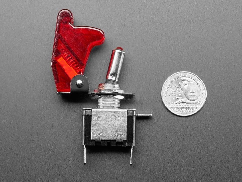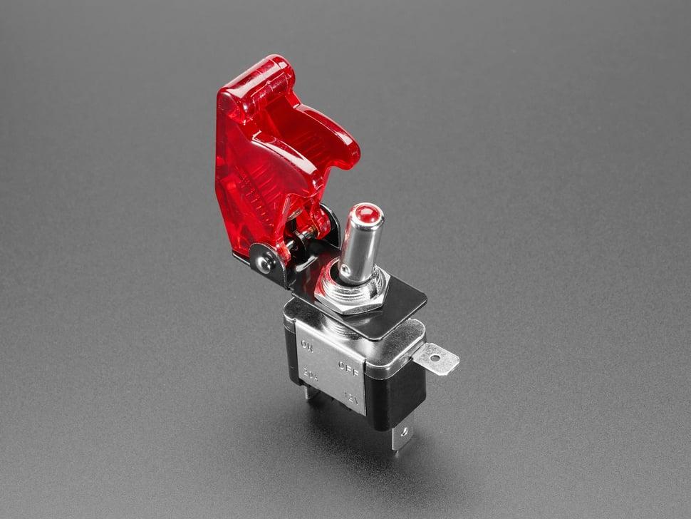 De beschermkap schakelt de schakelaar automatisch uit wanneer deze wordt dichtgeklapt, maar u kunt deze eenvoudig verwijderen als u dat niet wilt. Wordt niet geleverd met de spade-connectoren die we gebruikten om ze te demonstreren. U krijgt alleen de schakelaar zelf.