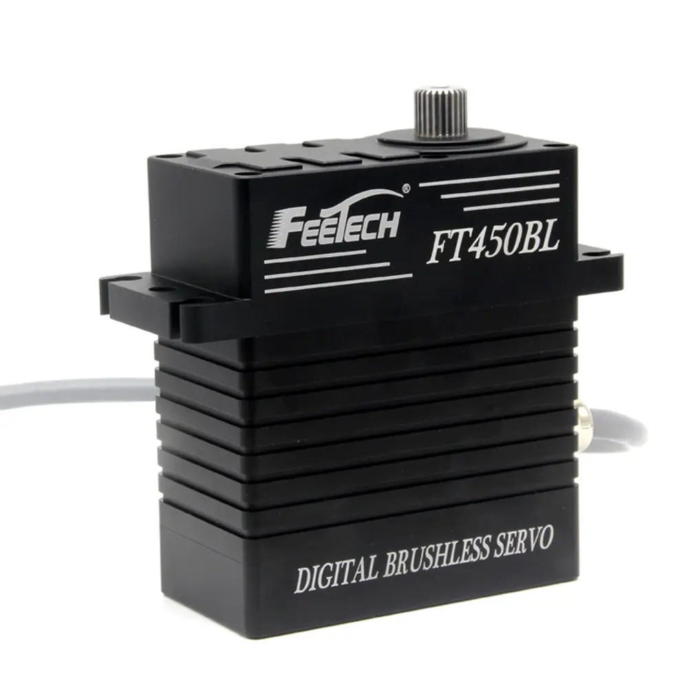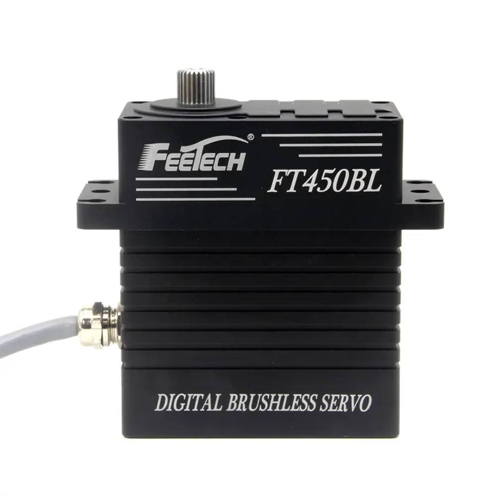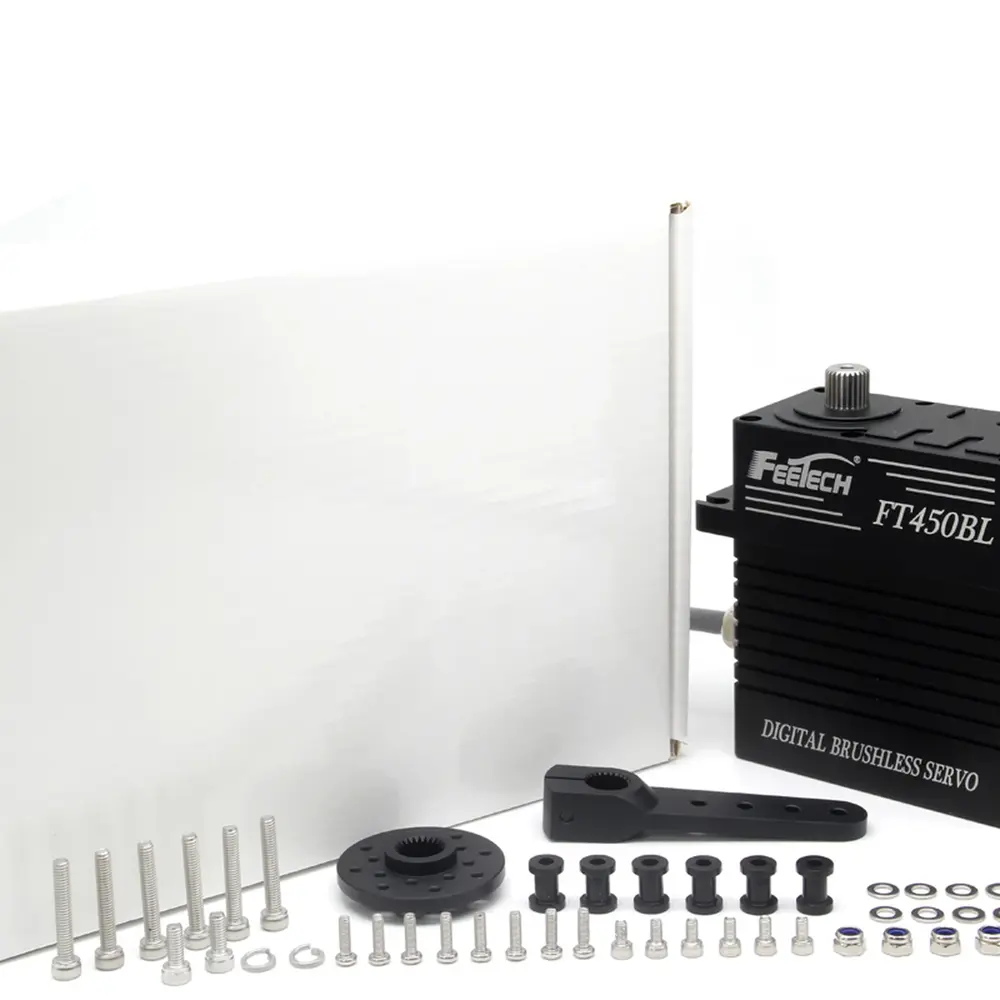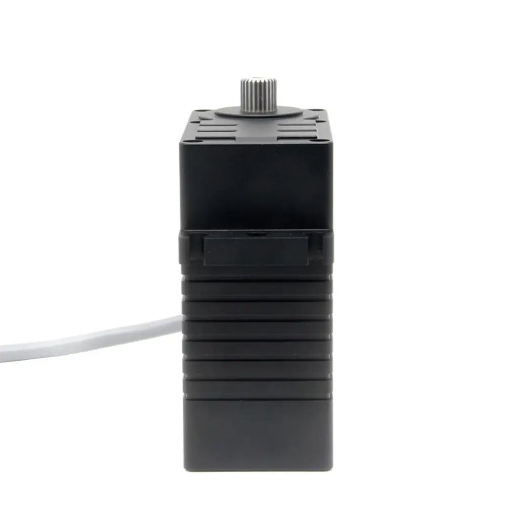 Deze industriële servo is ontworpen om uitzonderlijke prestaties te leveren in veeleisende omgevingen met een hoge belasting. Hij combineert een krachtige 24V borstelloze motor met een uiterst nauwkeurige 12-bits magnetische encoder om een immense stall torque van 450 kg·cm te produceren, met behoud van nauwkeurige hoekcontrole. Het belangrijkste ontwerpprincipe is het leveren van extreem vermogen en onwrikbare betrouwbaarheid dankzij de robuuste, volledig metalen constructie. Met een aluminium behuizing met IP65-classificatie en tandwielen van gehard staal is deze industriële servo ontworpen voor zware toepassingen, waaronder industriële automatisering, grootschalige robotica en maritieme apparatuur, waar zowel sterkte als nauwkeurigheid cruciaal zijn.