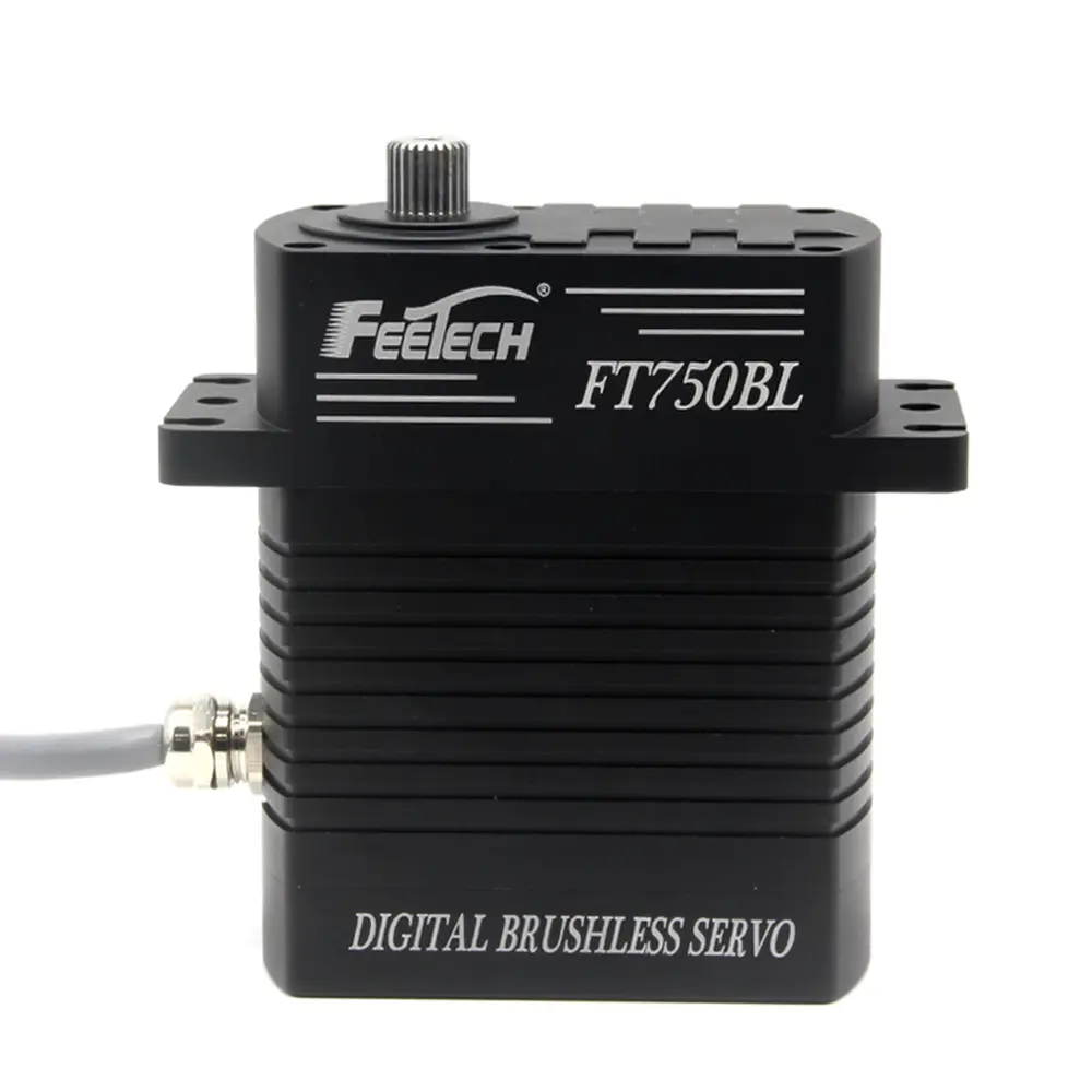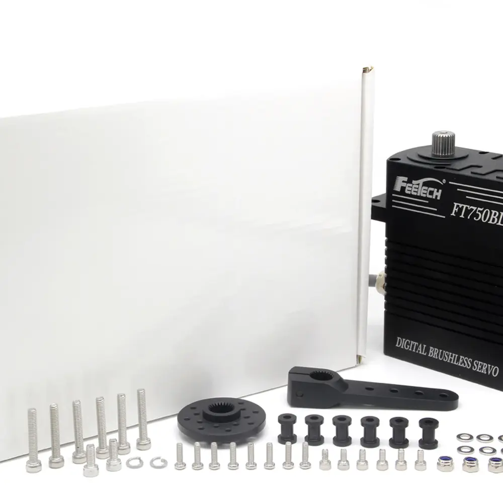 Deze borstelloze servo met een 750 kg·cm-koppel is ontworpen om extreem vermogen te leveren, met een stall tot 750 kg·cm. Deze immense kracht wordt gegenereerd door een zeer efficiënte borstelloze motor in combinatie met een robuust 252:1 volledig stalen tandwielreductiesysteem. Dankzij dit hoge koppel kan de robuuste actuator zware lasten verplaatsen, aanzienlijke weerstand overwinnen en een stabiele houdkracht bieden, waardoor hij geschikt is voor de meest veeleisende fysieke taken.
