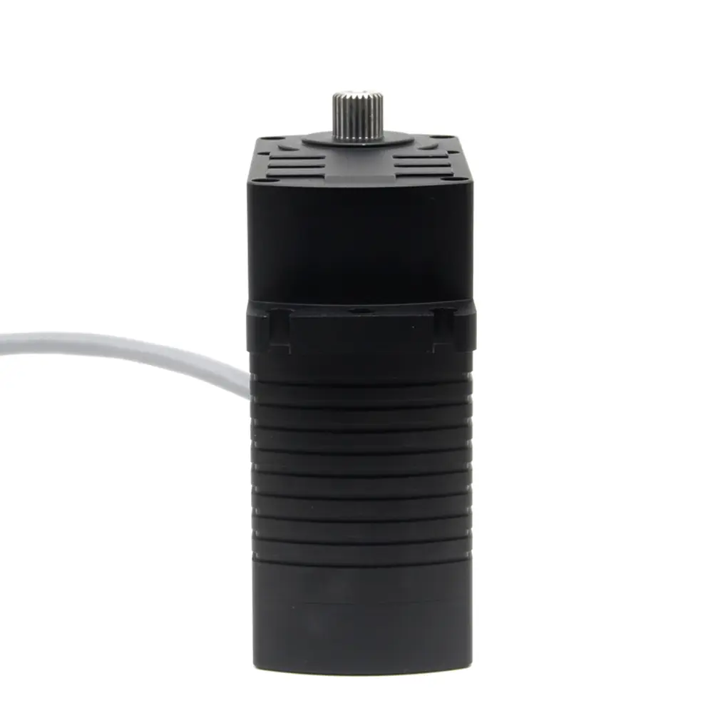 De volledig metalen servomotor is ontworpen voor een lange levensduur en continu gebruik en bevindt zich in een IP65-gecertificeerde, afgedichte aluminium case , die de interne componenten beschermt tegen het binnendringen van stof en water. Het borstelloze motorontwerp biedt een levensduur van meer dan 100.000 cycli, wat die van brushed ruimschoots overtreft. In combinatie met de slijtvaste stalen tandwielen is deze industriële servomotor gebouwd om de zware omstandigheden van industriële omgevingen te weerstaan zonder dat dit ten koste gaat van de prestaties.