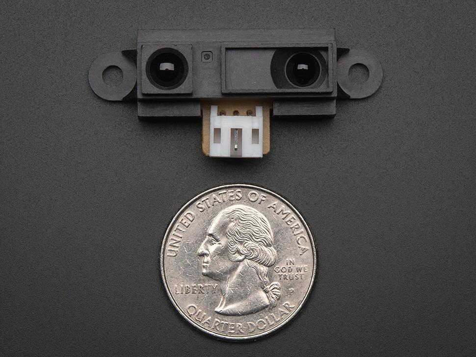 Belangrijkste kenmerken zijn onder andere een 30 cm lange 3-JST-interfacedraad voor eenvoudige connectiviteit. Sluit de zwarte draad eenvoudig aan op ground , de rode draad op 5 V en de witte draad op de analoge ingang. De output varieert van 3 V voor objecten op 10 cm afstand tot 0,4 V op 80 cm afstand.