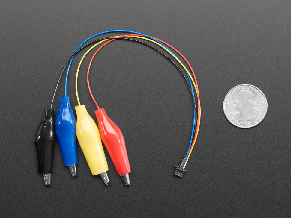 Deze kabel verbindt plug-and-play STEMMA QT-boards naadloos met andere platforms zoals Circuit Playground. Met een JST SH 4-pins stekker aan het ene uiteinde en vier afzonderlijke draden met duurzame krokodillenklemmen aan het andere uiteinde, vereenvoudigt hij je projecten door connectiviteitsproblemen te overbruggen.