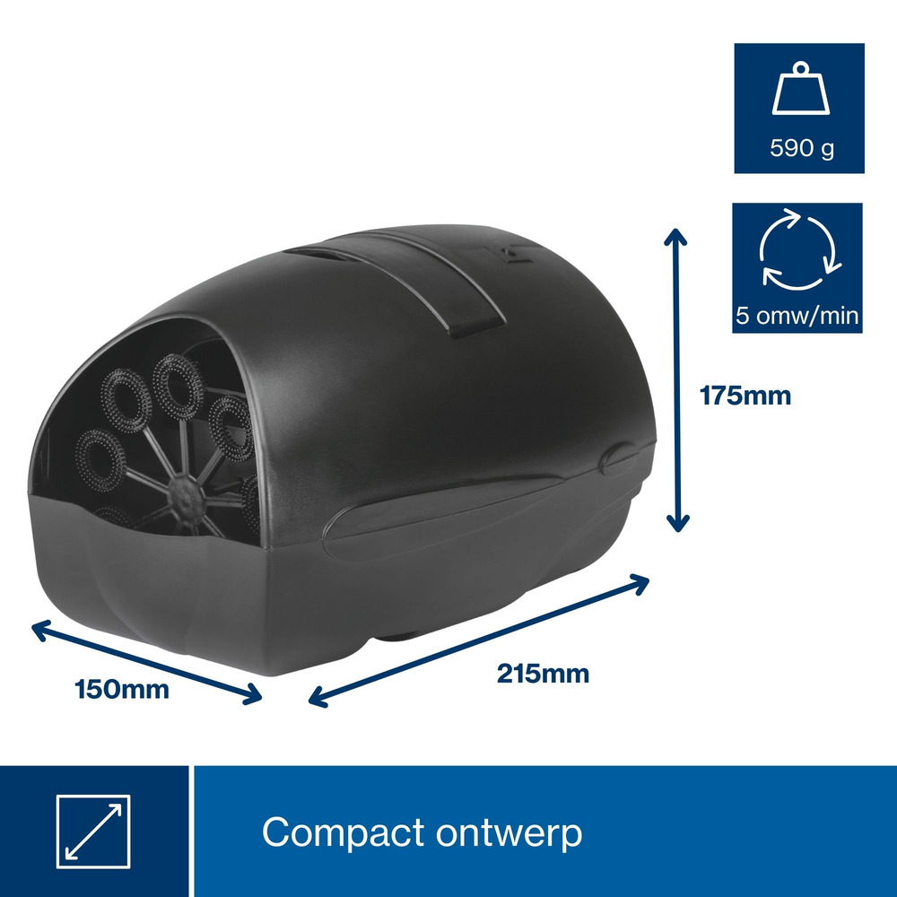 Dankzij de batterijaandrijving (apart verkrijgbaar) kun je deze machine overal mee naartoe nemen voor direct plezier. Geniet van een constante stroom zeepbellen door het efficiënte blaaswielmechanisme dat zorgt voor een stabiele productie.