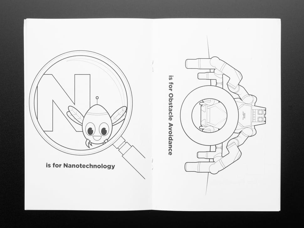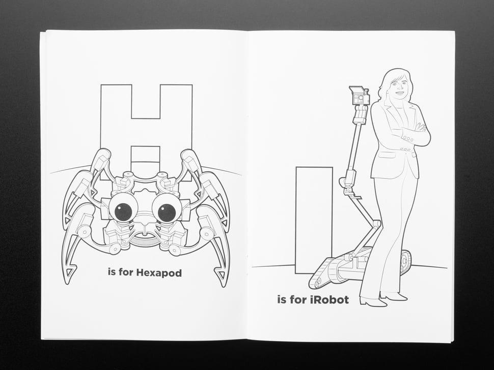 Ladyada's R is for Robotics is een kleurboekavontuur dat creativiteit en educatie op prachtige wijze combineert. Duik in de wereld van robotica terwijl je robots kleurt en meer leert over hun uitvinders.