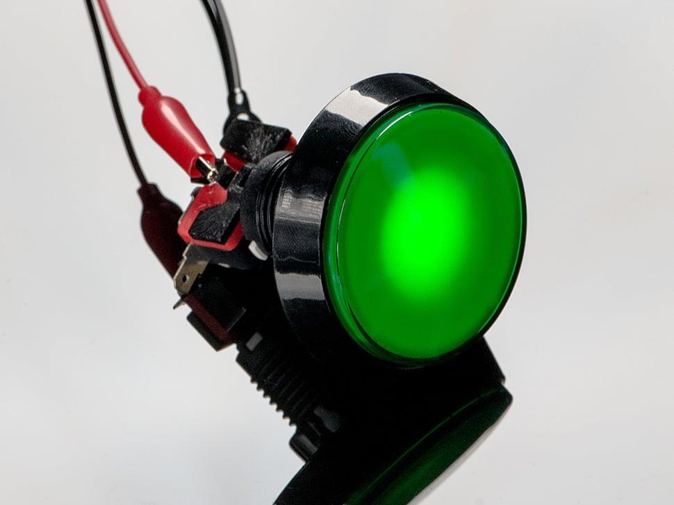 De knop activeert een standaard arcade-microschakelaar, voorzien van normaal open schakelcontacten die sluiten bij het indrukken. Dit garandeert betrouwbare prestaties bij elke druk op de knop.