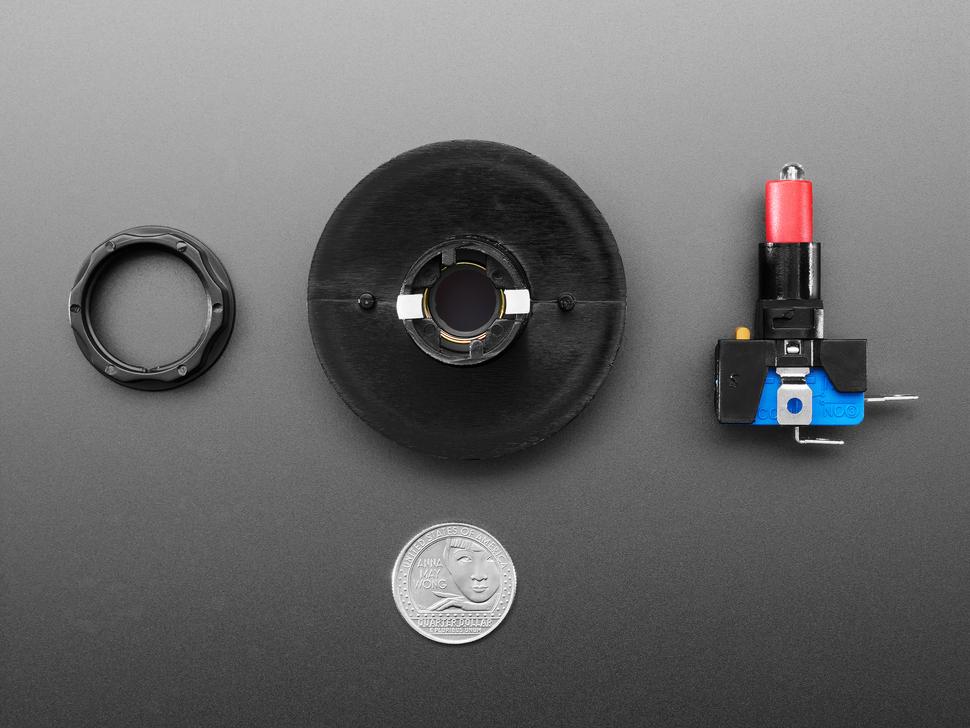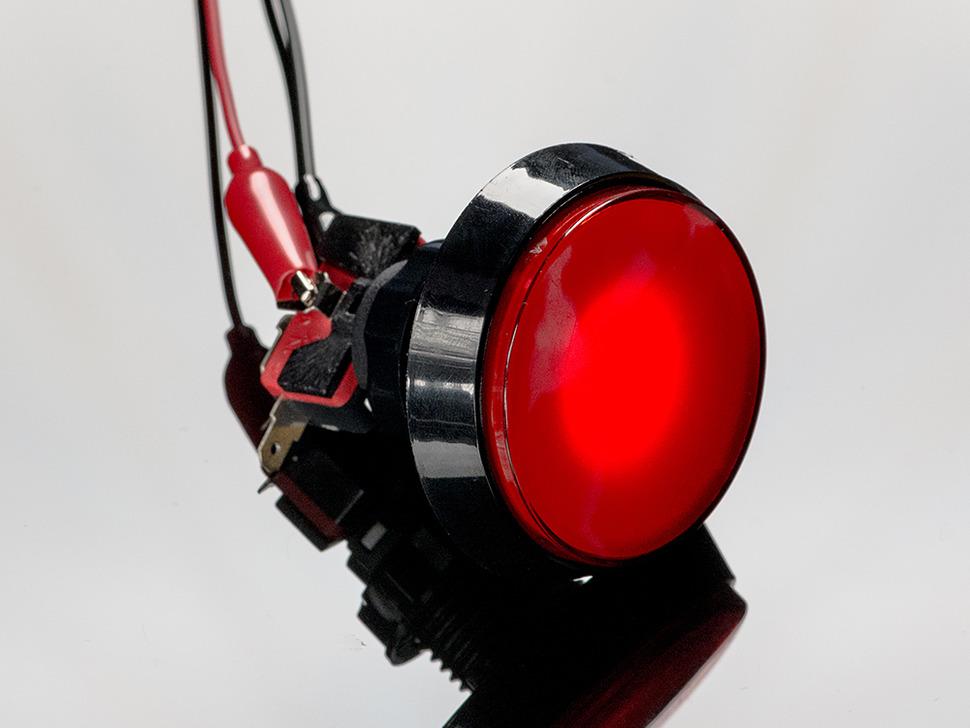 Deze knop werkt met een gangbare arcade-microschakelaar (meegeleverd). Deze is voorzien van normaal open contacten die sluiten als u erop drukt en biedt betrouwbare prestaties in de meeste toepassingen binnenshuis.