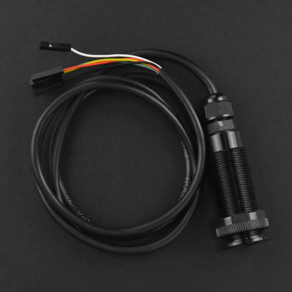 De sensor is verpakt in een strakke, zwarte metalen behuizing met een schroefdraad en is zowel duurzaam als functioneel. De sonde is afgeschermd met een optische afdekking, waardoor optische interferentie beter wordt gefilterd en de sensor water- en schokbestendig is. Dit geïntegreerde ontwerp garandeert niet alleen een lange levensduur, maar ook optimale prestaties in diverse omgevingen.