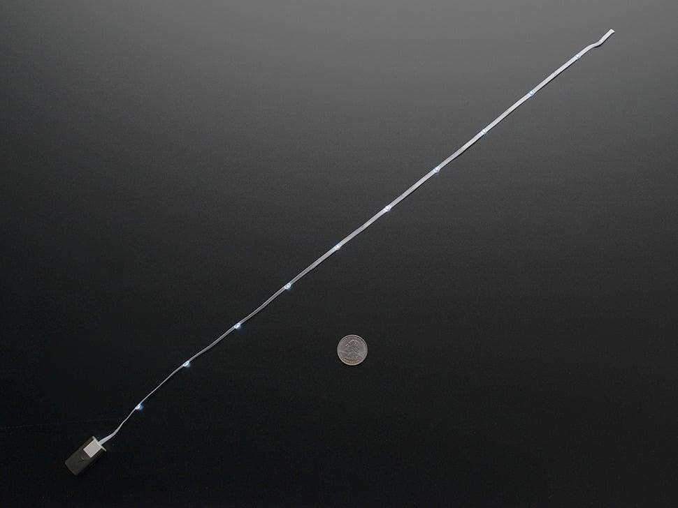 Het lint is ongeveer 53 cm measures en heeft 10 gelijkmatig verdeelde witte leds die een strakke en gelijkmatige gloed produceren. Het lint is gemakkelijk aanpasbaar en kan op de gewenste lengte worden geknipt; het kan echter na het knippen niet opnieuw worden bevestigd of gesoldeerd.
