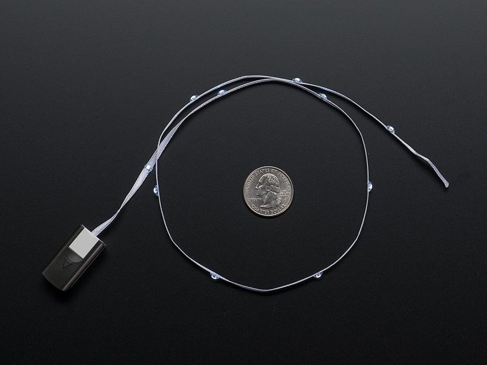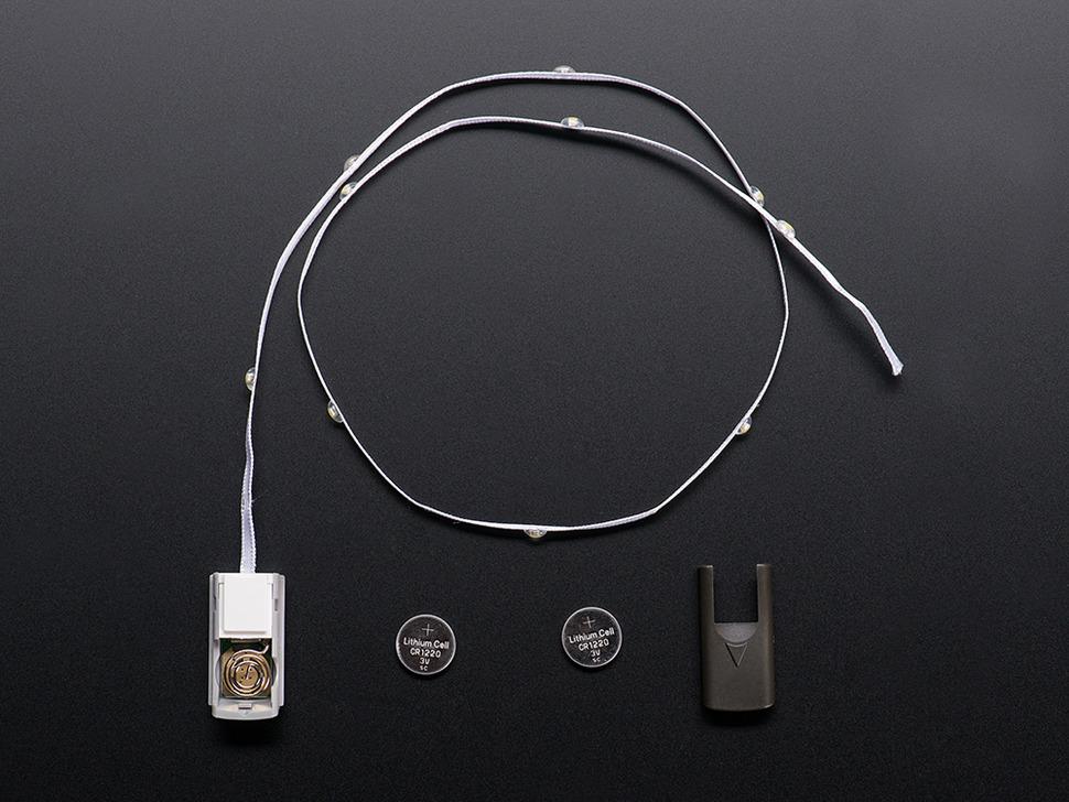 Een compacte controller battery pack wordt aan het uiteinde van het lint bevestigd en biedt vier modi: volledig aan, snel knipperen, langzaam knipperen en een rustgevende, langzame fade-in en -uit. De controller wordt gevoed door twee 12mm knoopcelbatterijen en is gebruiksklaar. Extra batterijen en batterijpacks zijn verkrijgbaar voor langdurig gebruik of verdere aanpassing.