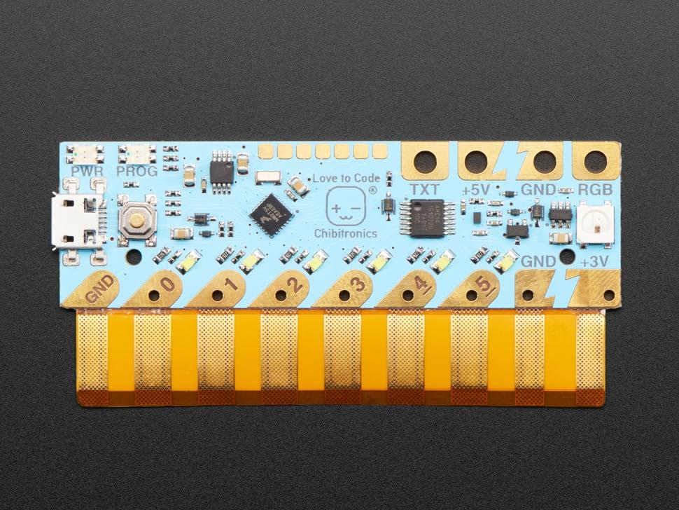 De Chibi Chip Microcontroller- board & kabelkit bevat de innovatieve Chibi Chip en een unieke voedings- en programmeerkabel. Deze componenten blazen de Chibi Lights LED-stickers nieuw leven in, waardoor ze naar wens kunnen knipperen en vervagen.