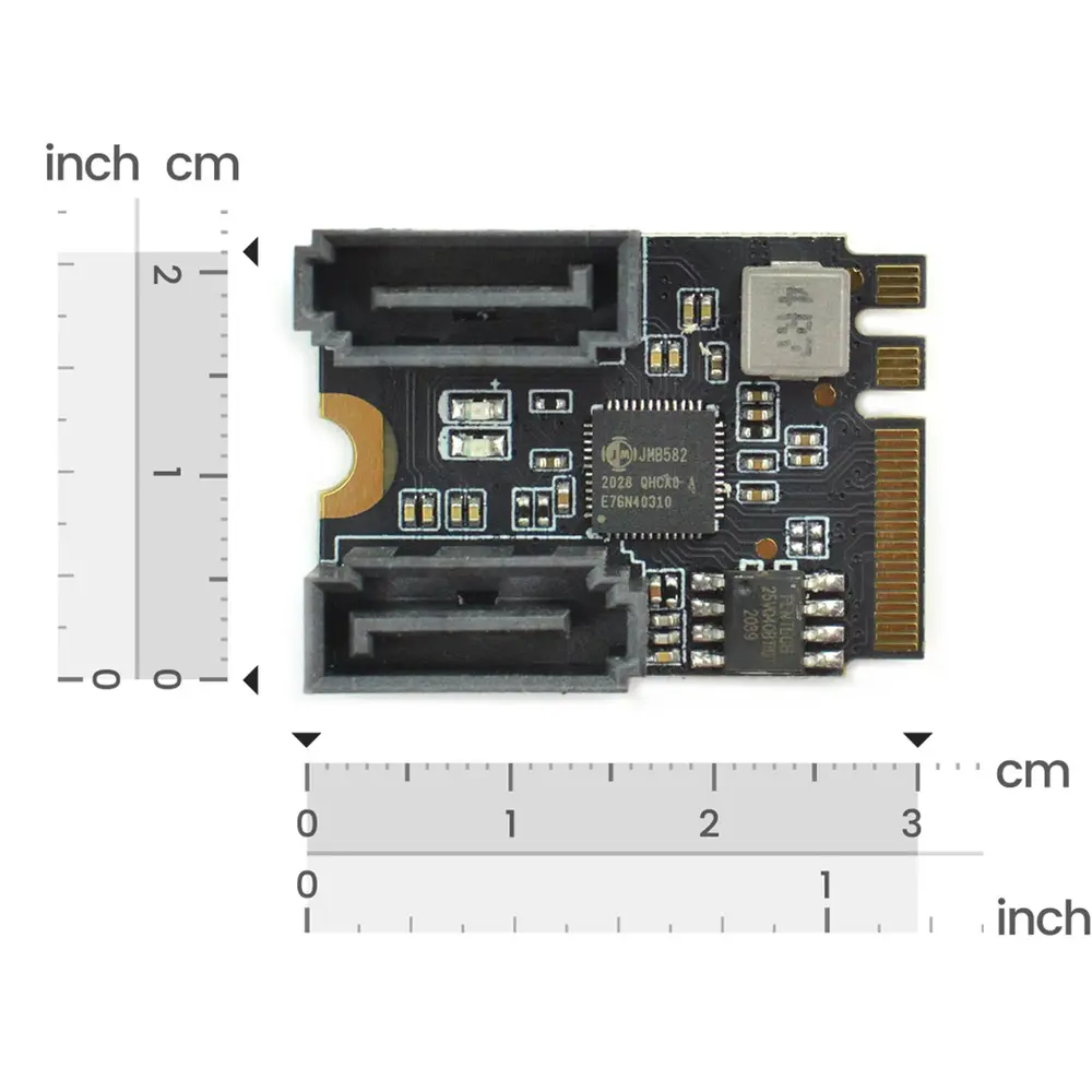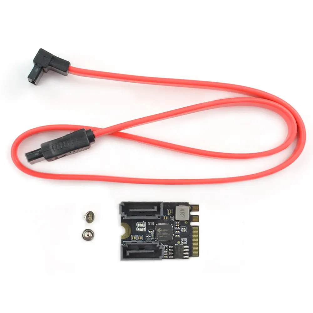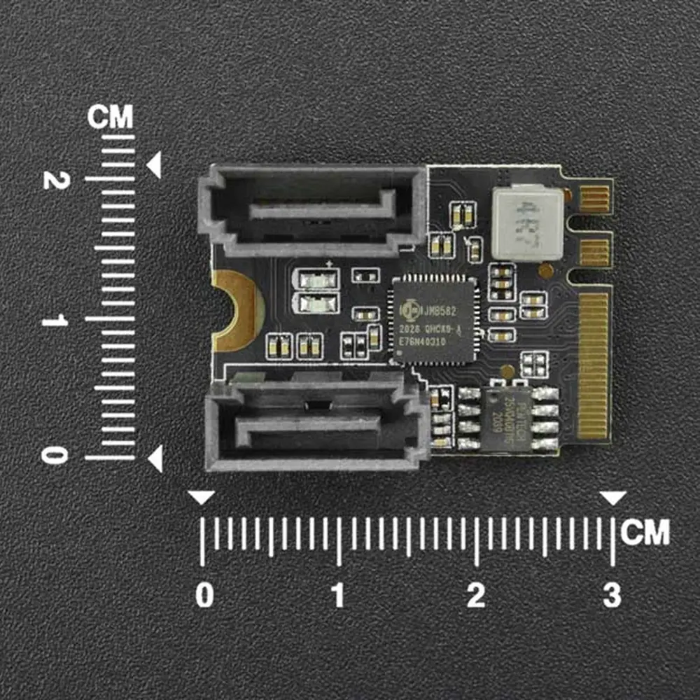Deze M.2 (A+E Key) naar SATA3.0-uitbreidingskaart biedt een naadloze verbinding voor moderne computerbehoeften. Door de overdracht van twee SATA-poorten via de M.2 (A+E Key)-sleuf verbetert hij de connectiviteitsopties voor apparaten zoals de LattePanda Delta/Alpha. Gebruikers kunnen moeiteloos twee solid-state drives of harde schijven aansluiten met SATA-datakabels, waardoor de opslagcapaciteit wordt gemaximaliseerd en efficiënt gegevensbeheer wordt gegarandeerd.