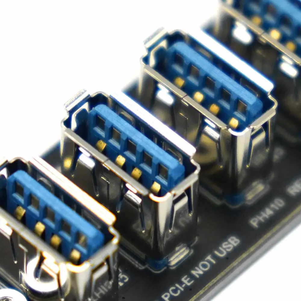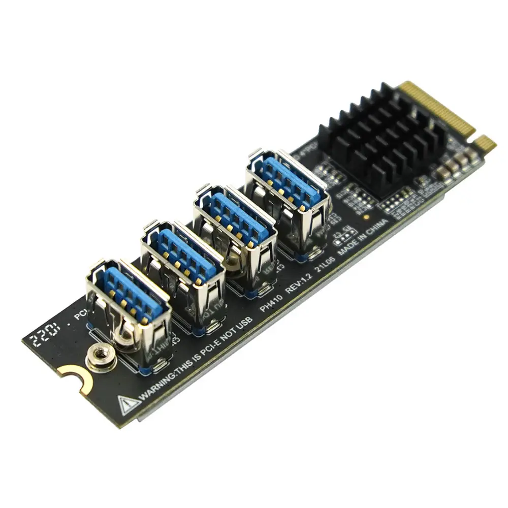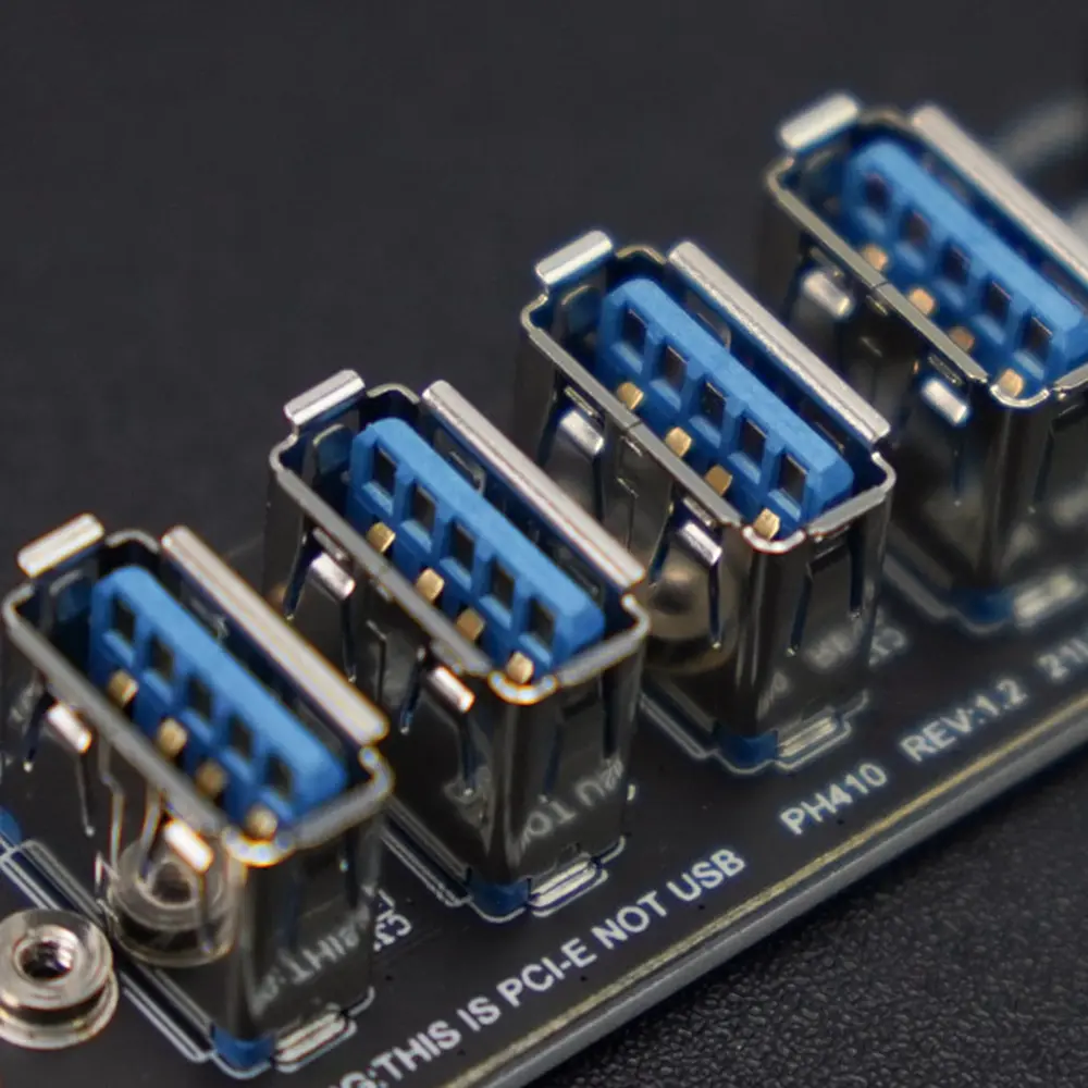 Het is belangrijk om te weten dat alle vier de poorten van de board PCIex1 zijn, ontworpen voor het verzenden van PCIe-signalen in plaats van USB -gegevens. Om externe PCIe-apparaten aan te sluiten, moet deze worden gebruikt in combinatie met een PCIex1 naar PCIex16-adapterkaart, om een correcte functionaliteit en connectiviteit te garanderen.