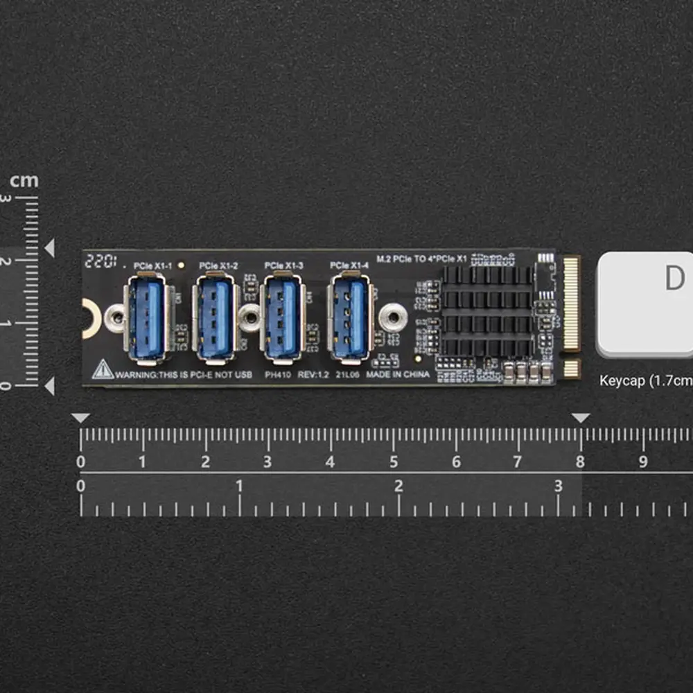 Dit is een M.2 M Key naar 4-weg PCIe- board speciaal ontworpen voor LattePanda Sigma-gebruikers. Deze kaart lost het probleem van beperkte PCIe-interfaces efficiënt op, waardoor connectiviteit nooit een probleem is. Het ontwerp is driver en ondersteunt plug-and-play-functionaliteit, voor naadloze integratie met uw apparaat.