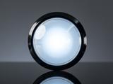 De koepelvormige witte kunststof afdekking met zwarte borgring is ontworpen voor gebruik binnenshuis en herbergt een optionele ledfunctie. De led, voorzien van een ingebouwde weerstand, werkt tot 12 V. Ondanks de grootte van de knop, is het mogelijk dat de verlichting niet het hele oppervlak gelijkmatig bestrijkt.