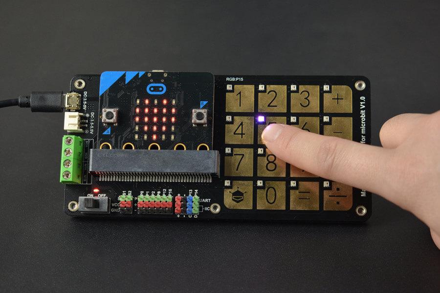 Laat je creativiteit de vrije loop met ons Math & Automatic Expansion- board voor Micro:bit . Dit board is veelzijdig en perfect voor het creëren van boeiende wiskundespellen of geavanceerde automatiseringsprojecten. Stel je voor dat je een dynamische wiskundequiz maakt waarbij kleurrijke RGB-leds en interactieve aanraaktoetsen getallen omzetten in een levendige visuele ervaring. Elk van de 16 programmeerbare aanraaktoetsen werkt naadloos samen met Micro:bit en biedt aanpasbare feedback die aansluit op de invoervoorkeuren van de gebruiker.