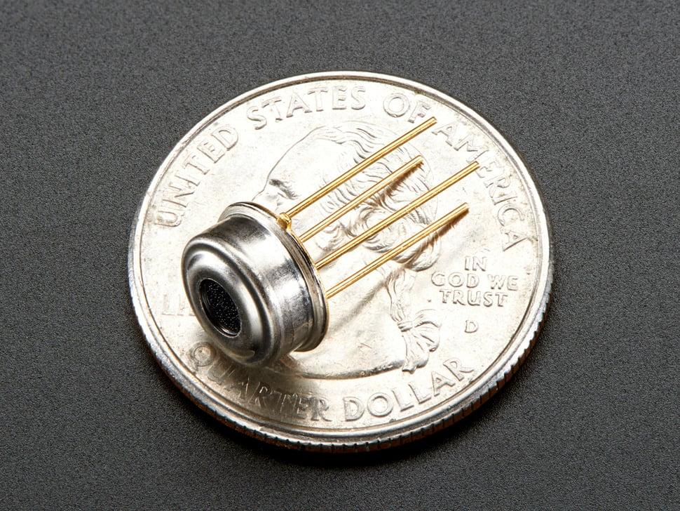 De meting vindt plaats over een gezichtsveld van 90 graden, wat handig is voor het bepalen van de gemiddelde temperatuur van een gebied. Deze sensor wordt geleverd in een gebruiksvriendelijk metalen blikje. Je kunt hem eenvoudig solderen of op een breadboard aansluiten.
