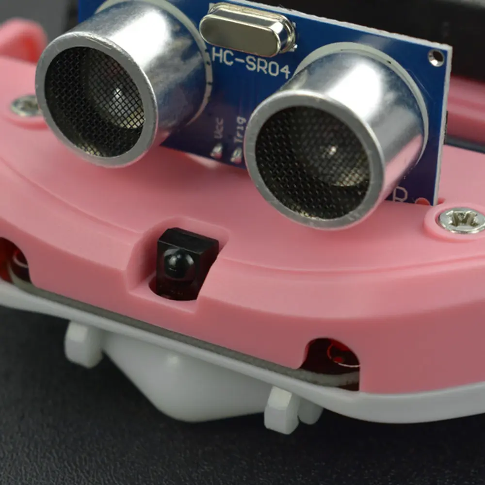 De Maqueen Lite is ontworpen om naadloos samen te werken met zowel Micro:bit V1 als V2 en beschikt over een overvloed aan geïntegreerde randapparatuur. Hij omvat een ultrasone afstandsmeter om afstanden te detecteren en te meten, een IR-ontvanger en een IR-lijnvolgsensor, waardoor de robot efficiënt gedefinieerde paden kan volgen. De led-autoverlichting en RGB-sfeerverlichting verhogen de interactiviteit en bieden visuele feedback en betrokkenheid voor gebruikers.