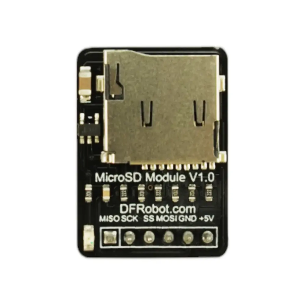 Ervaar naadloze gegevensopslag en -opvraging met de Micro SD(TF)-module van DFRobot , ontworpen om effectief te integreren met uw projecten. Dit compacte apparaat biedt plaats aan een TF SD-kaart, de kleinste op de markt en vaak te vinden in mobiele telefoons, zodat u optimaal gebruik kunt maken van krappe ruimtes. Of u nu temperatuurgegevens registreert in een proefkas of time-lapse video's maakt van uw moestuin, de mogelijkheden zijn zo groot als uw verbeelding.