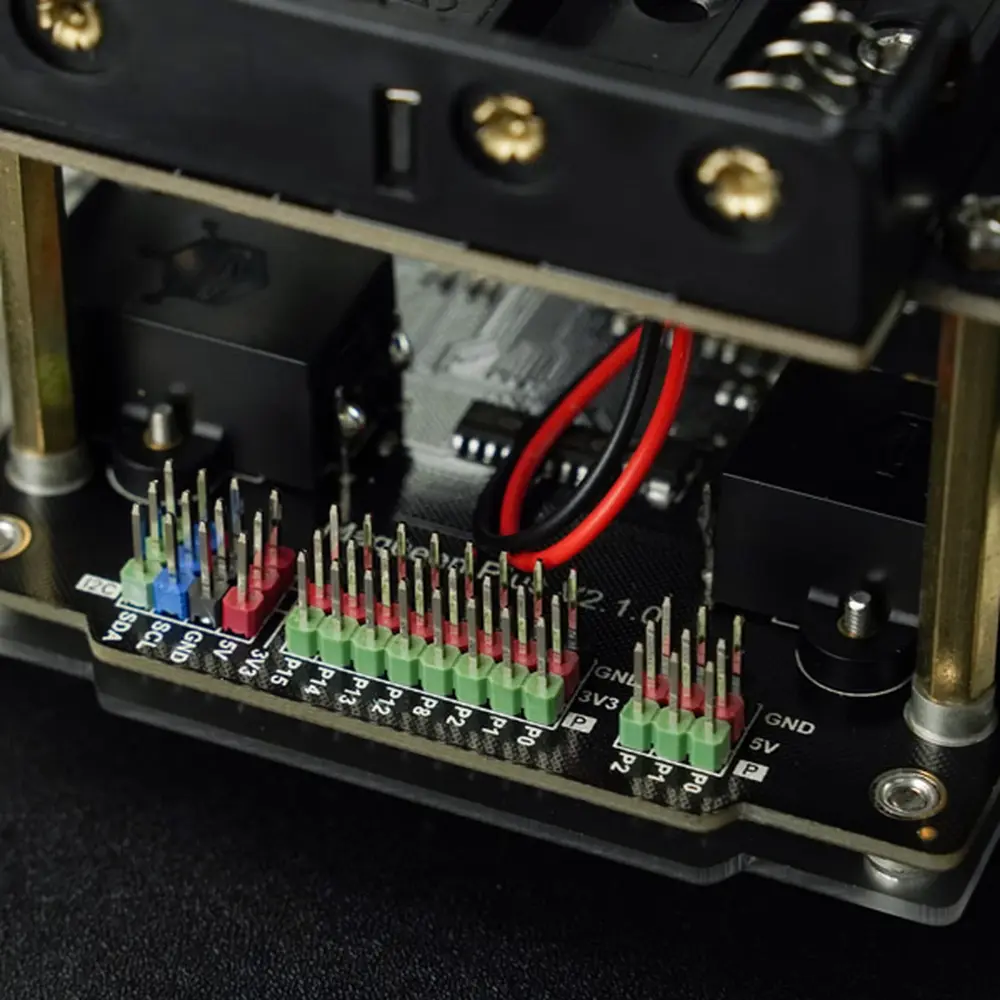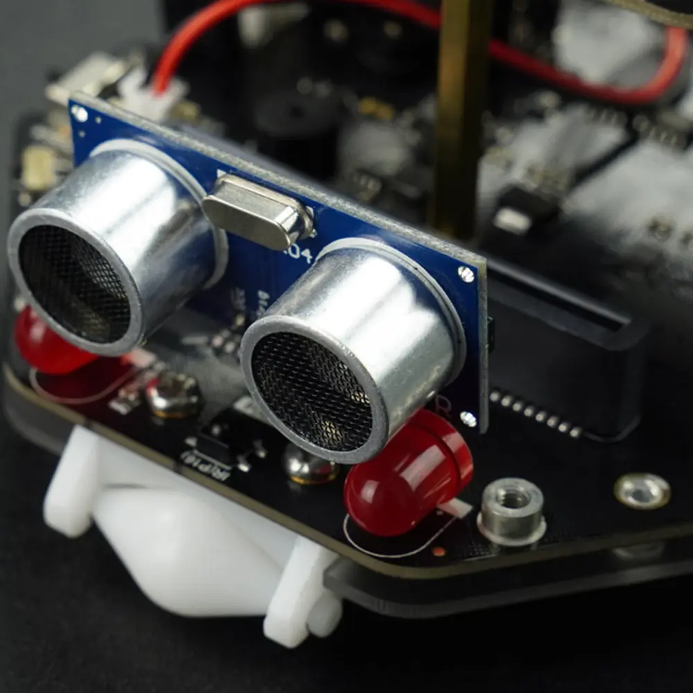 Duurzaamheid en gebruiksgemak staan voorop in het ontwerp van de Maqueen Plus V2, dankzij een matte acryl beschermplaat en een vereenvoudigde installatie van ultrasone sensoren. Robuust en betrouwbaar, net als zijn voorgangers, is hij voorzien van motoren met consistente prestaties, veelbelovende stabiliteit en een soepele rijervaring. Het verfijnde lijnvolgsysteem, nu met 5 sensoren in plaats van 6, maakt een eenvoudigere programmering mogelijk en zorgt voor efficiënte routetracering.