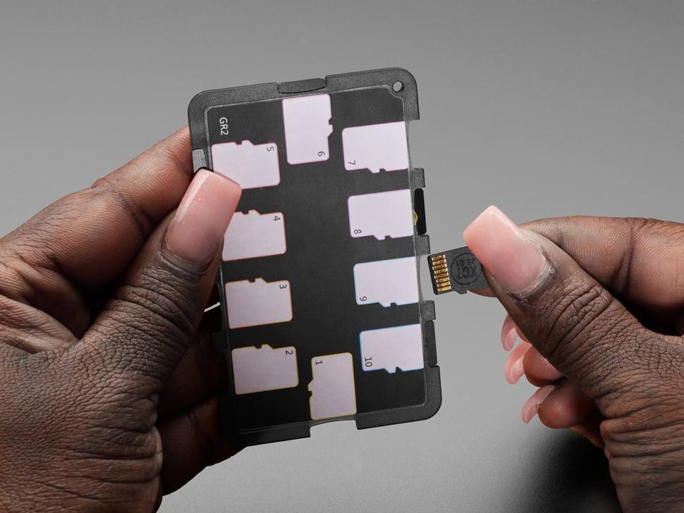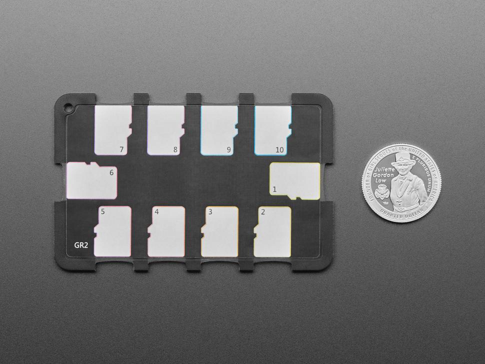 Elke bestelling bevat één houder die 10 x microSD-kaarten kan bewaren. Als je werkt met single board computers zoals de Raspberry Pi of BeagleBone, of misschien doe je veel aan datalogging of fotografie, dan weet je dat je microSD-kaarten zich kunnen vermenigvuldigen als tribbles. En die kaarten zijn zo klein dat je er niet op kunt schrijven waar ze voor zijn. Dat is waar deze kaartenhouder van pas komt.
