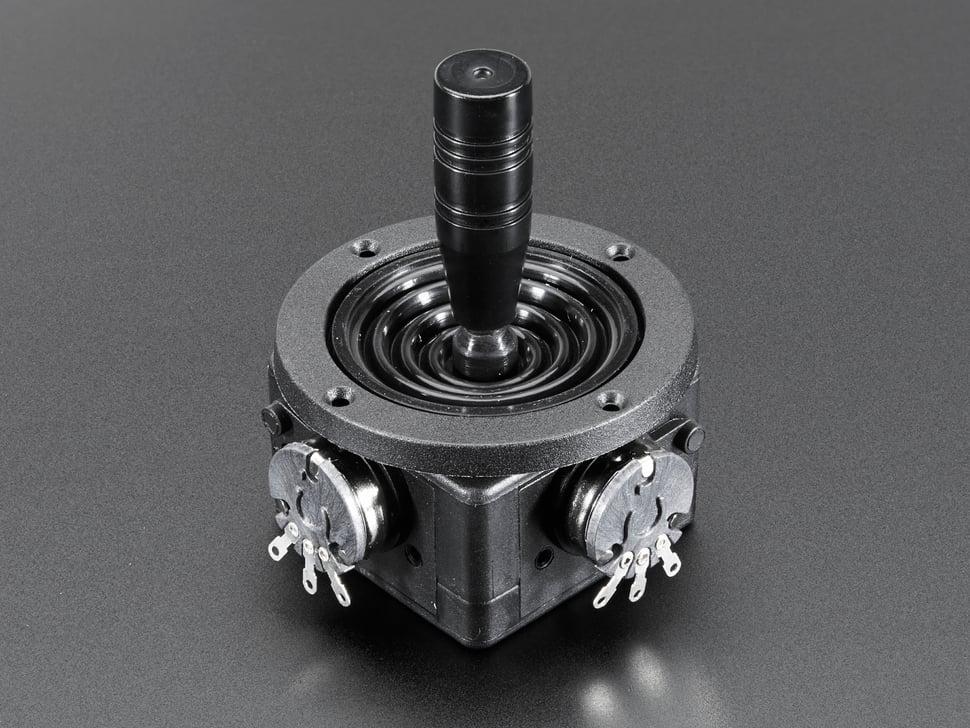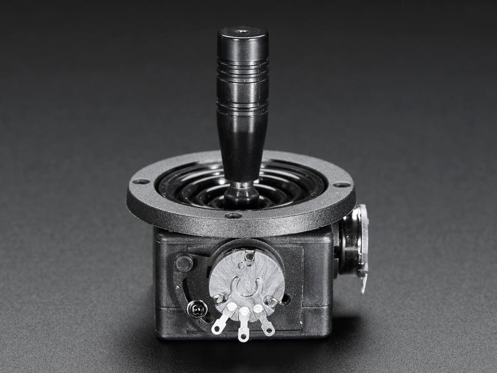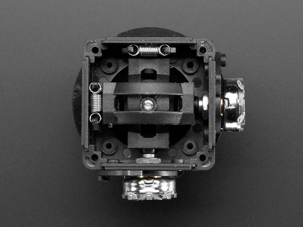 In tegenstelling tot de meeste arcade-joysticks, die worden geleverd met vier klikkende schakelaars, heeft dit product twee 10 kΩ-potentiometers en een terugverend systeem. Je kunt een volle 50 graden in zowel X- als Y-richting bereiken. Verbind één kant van elke potentiometer met ground en de andere kant met een hogere spanning terwijl je de analoge spanning in het midden afleest. Ideaal voor robotica en andere besturingsinterfaces.