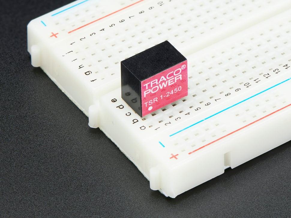 De TSR-1-schakelregelaars bieden andere belangrijke kenmerken ten opzichte van lineaire regelaars: een betere output (±2%), een lagere stand-bystroom van 2 mA en er zijn geen externe condensatoren nodig.