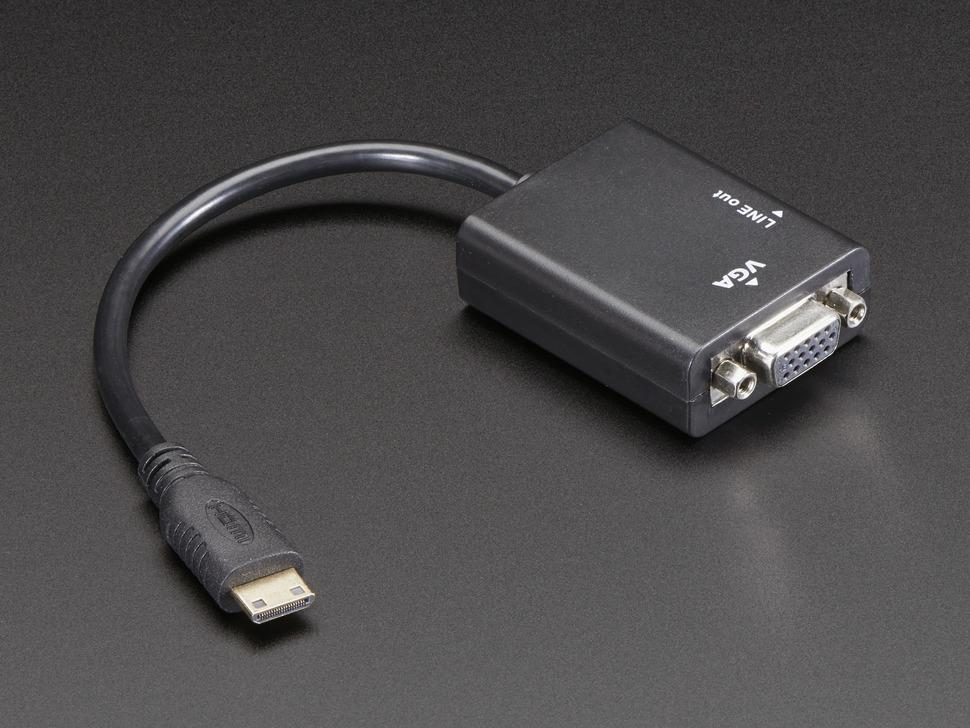 Het pakket bevat een HDMI-naar-VGA-adapter en een 3,5 mm stereokabel ( male /mannelijk). Voor een optimale display past u de resolutie-instellingen aan via het bestand config.txt op uw SD-kaart.