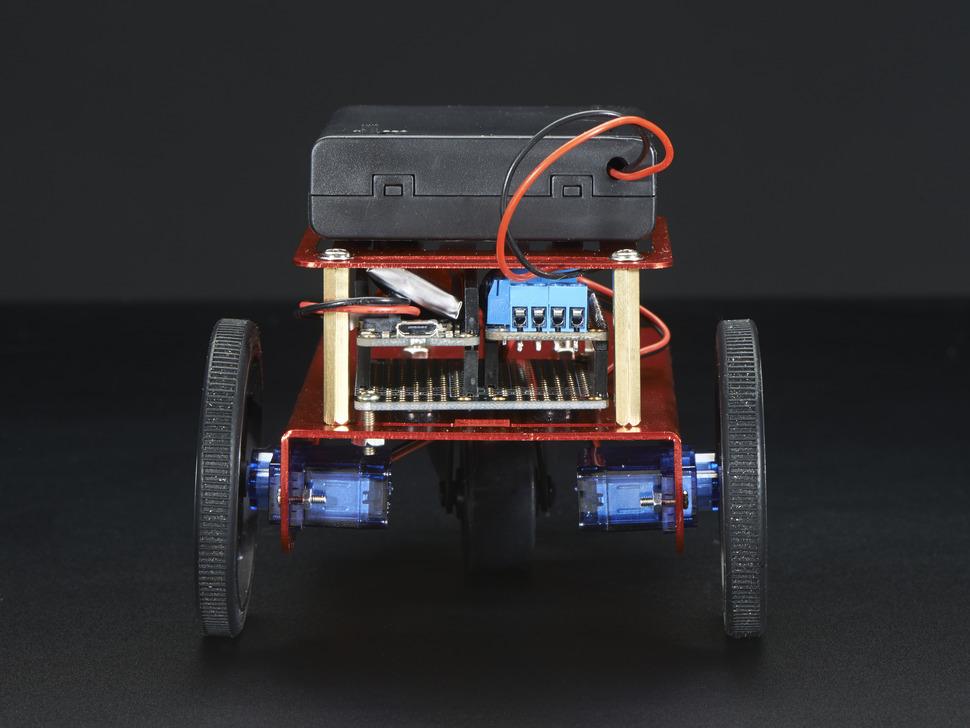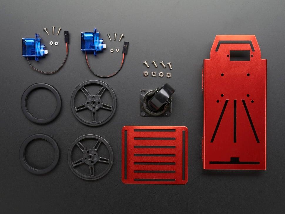 De kit bevat 2 wielen, 2 DC motors in MicroServo-vorm, een steunwiel, een metalen chassis en een metalen bovenplaat met bevestigingsmateriaal. De montage gaat verder dan alleen het in elkaar zetten van onderdelen; het biedt een opstap naar experimenten met op afstand bestuurbare robotica. Ontdek een uitgebreide tutorial om een feather LE-versie te bouwen, die je door een van de vele eindeloze ontwerpmogelijkheden leidt.