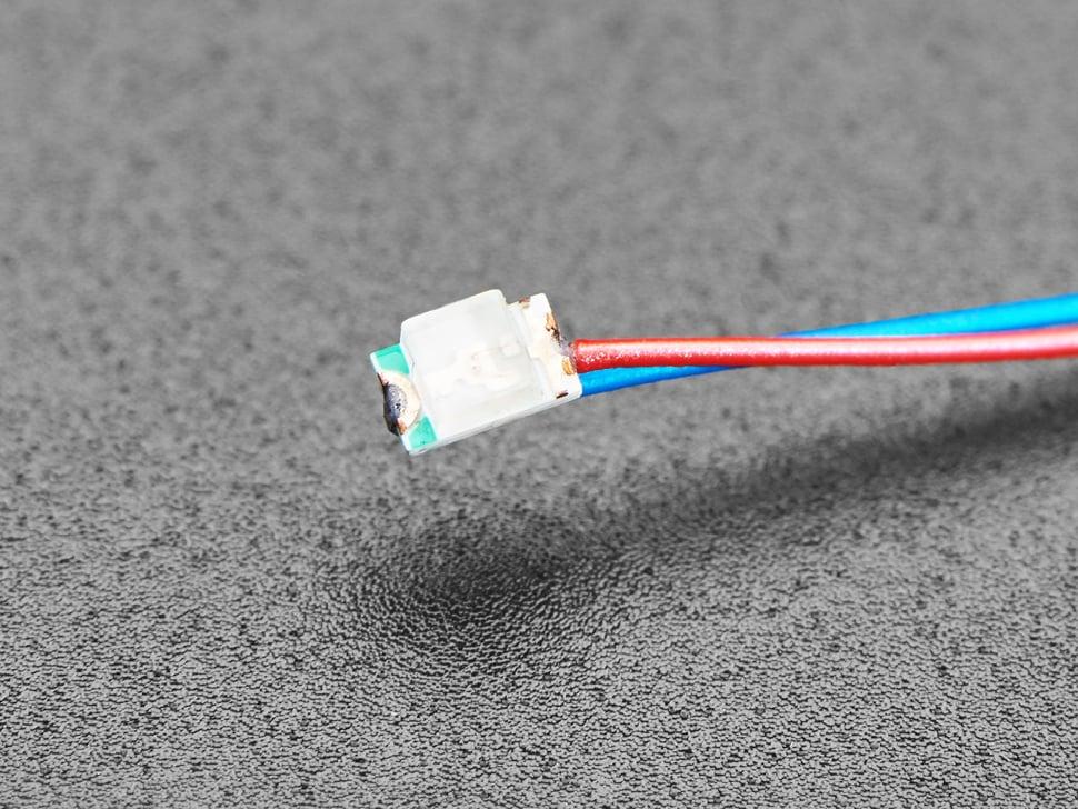Deze ultrafijne bedrade leds zijn ontworpen voor naadloze integratie in elk project en hebben een compact formaat van 2 mm x 1,25 mm, waardoor ze eenvoudig in structuren, kostuums of wearables kunnen worden ingebouwd. De draden zijn ongeveer 30 cm lang en hebben een 30AWG-draadwikkeling voor flexibele configuratie.