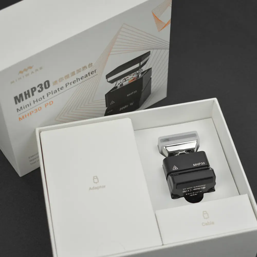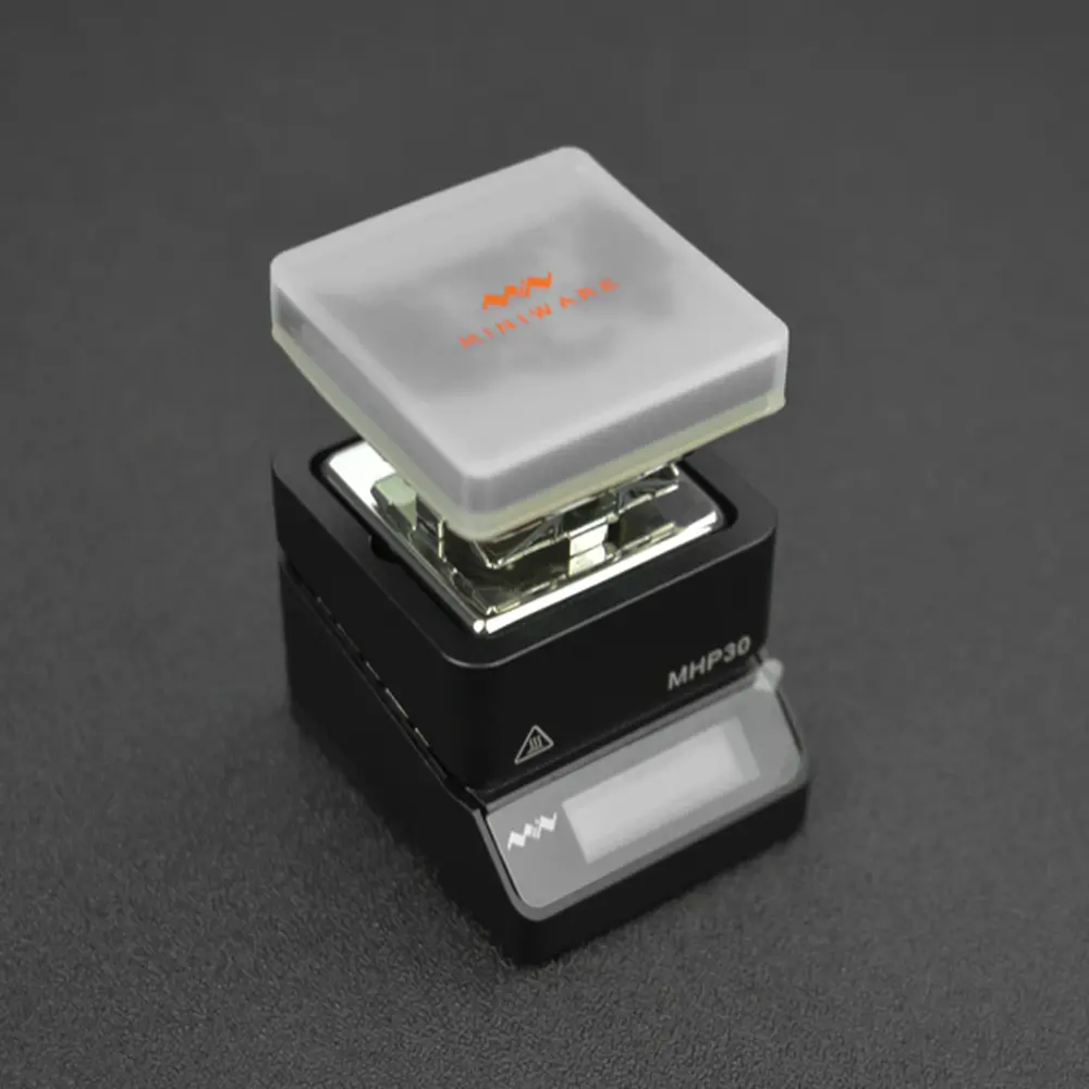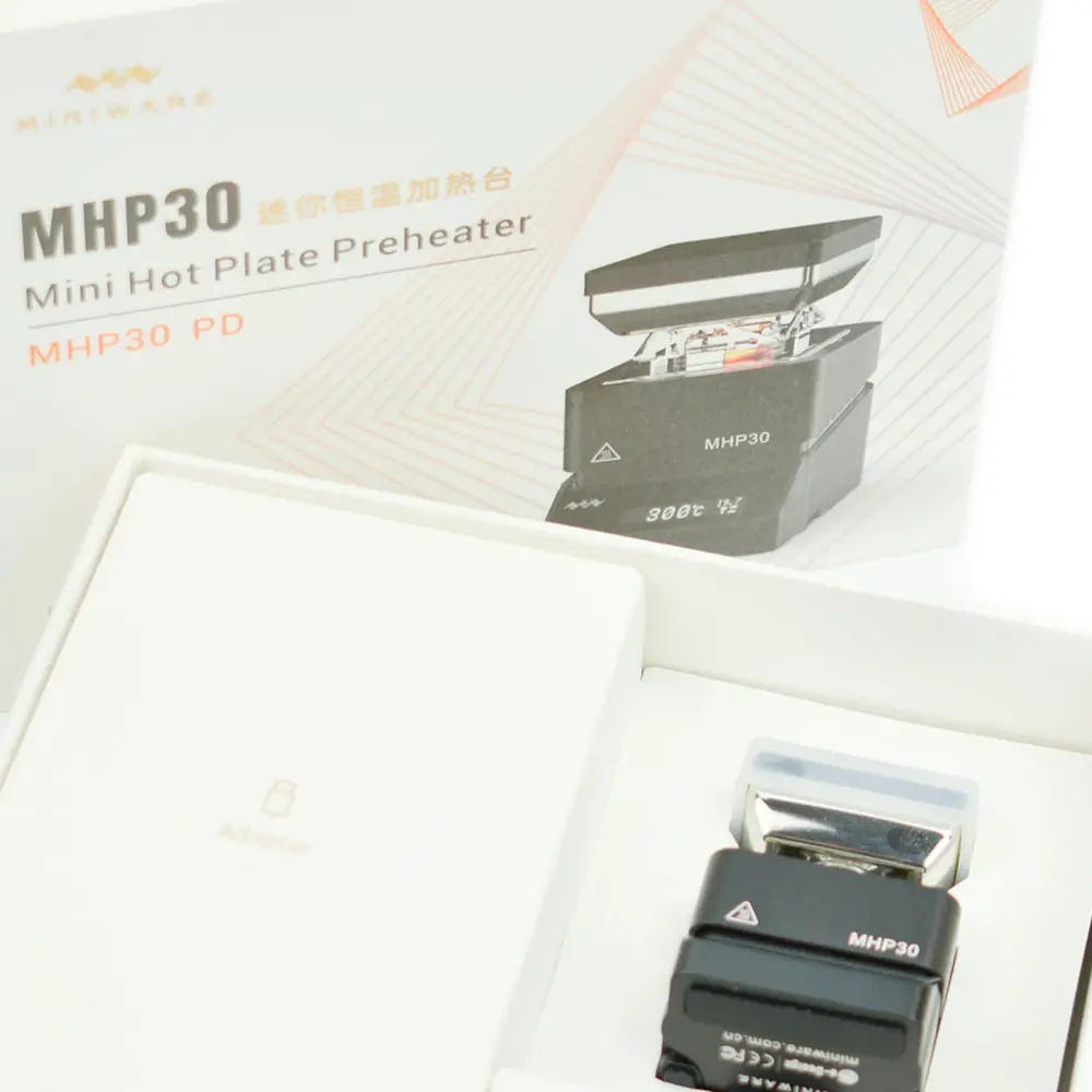 De MHP30 heeft een opvallend en verfijnd ontwerp, slechts 5,2 cm hoog met een verwarmingsoppervlak van 3 cm bij 3 cm. Zijn slanke, torenachtige uiterlijk accentueert zijn bruikbaarheid en verhoogt de werkefficiëntie aanzienlijk. Het is een handig apparaat voor taken zoals voorverwarmen en desolderen, waardoor ingewikkeld werk eenvoudiger en efficiënter wordt.