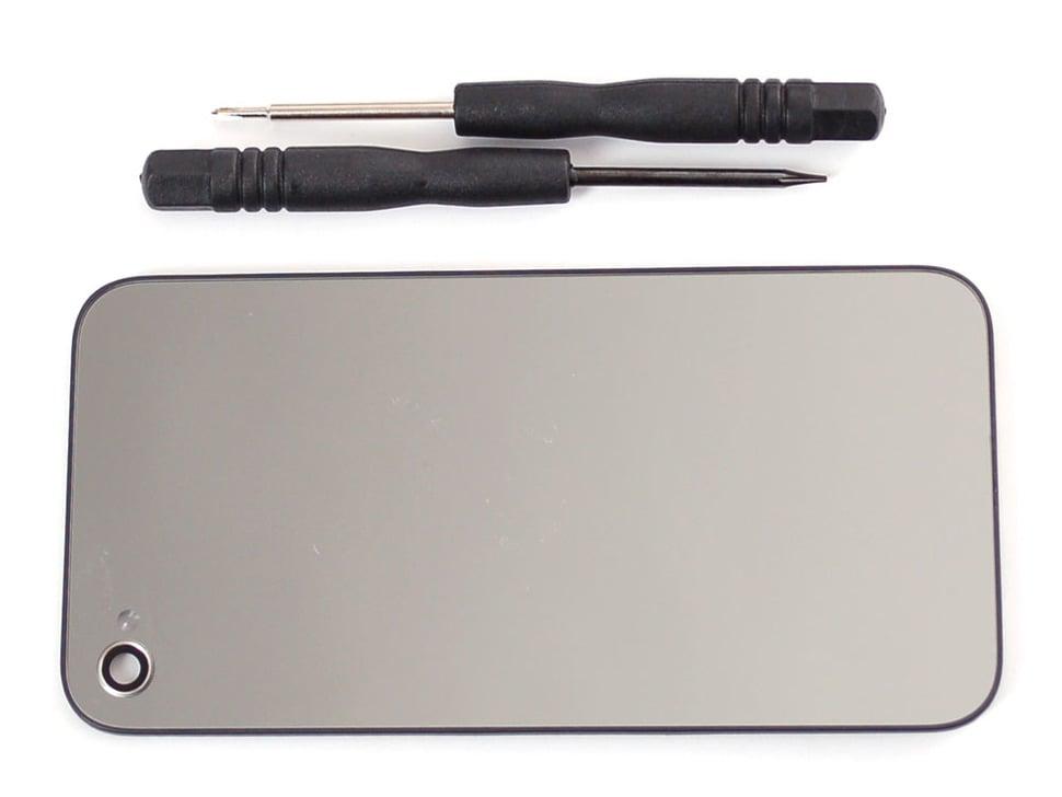Turn your iPhone 4 into a mirror - great for applying makeup, looking under your car, or signalling for help when trapped on a deserted island. This kit comes with a reflective plastic back and two basic screwdrivers (one pentalobe, one phillips - use whichever your phone has) to remove the back and replace it.