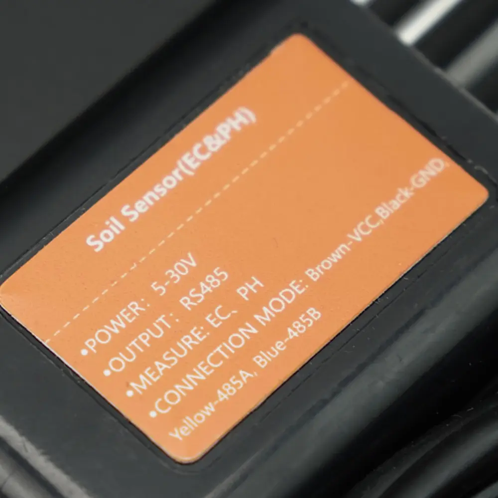 De bodemsensor heeft een IP68-beschermingsgraad en is vacuümgevuld en afgedicht met zwarte, vlamvertragende epoxyhars. De sonde, gemaakt van roestvrij staal 316, is bestand tegen roest, water, corrosie, zout-alkalicorrosie en langdurige elektrolyse. De prestaties worden beïnvloed door het zoutgehalte van de bodem. Het compacte formaat maakt langdurige inbedding in de bodem mogelijk en is compatibel met een breed scala aan bodemsoorten.