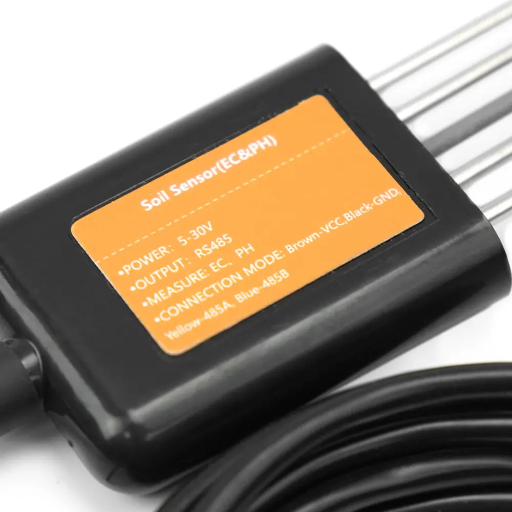 De sensor voor de elektrische geleidbaarheid (EC) en pH van de bodem is zeer veelzijdig en werkt binnen een breed spanningsbereik van 5-30 V. Hij verzendt gegevens via RS485 met behulp van het MODBUS-RTU-protocol, wat zorgt voor snelle en betrouwbare reacties met minimale interferentie van de omgeving. De sensor is eenvoudig te integreren met Arduino -systemen, waardoor hij ideaal is voor toepassingen zoals hydrocultuursystemen, zout- en alkalisch bodembeheer en druppelirrigatiesystemen.