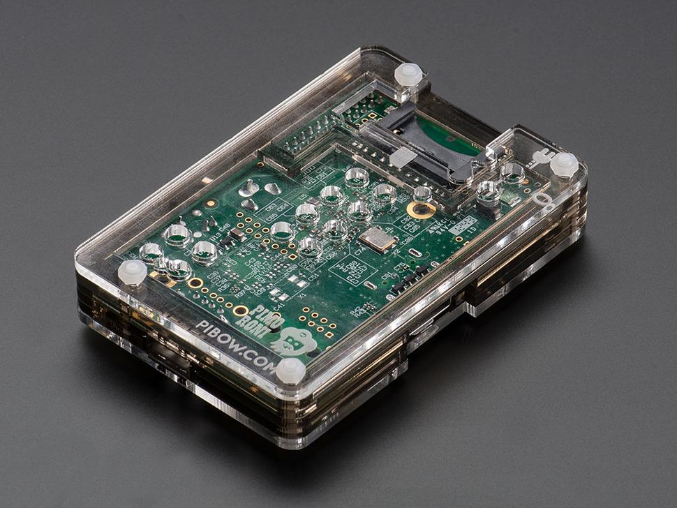 De Pibow is een innovatieve case voor de Raspberry Pi Model A, die de essentie van de Raspberry Pi filosofie perfect weergeeft. Gemaakt van zes levendige, lasergesneden acryllagen, vormt hij een robuuste behuizing met behoud van toegang tot essentiële poorten.