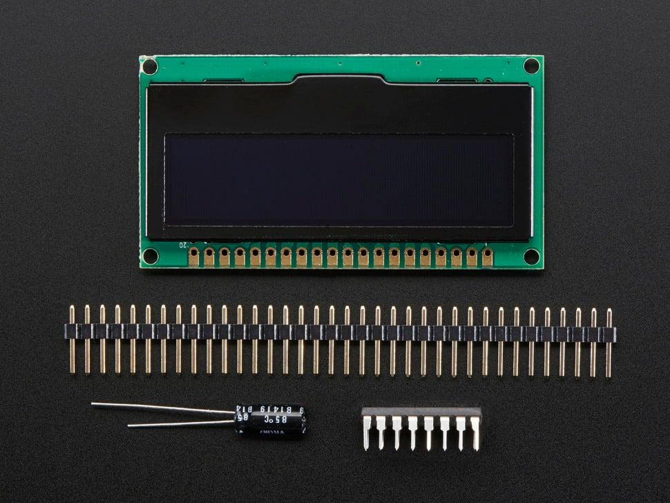 De geïntegreerde converter die 3,3 V omzet naar een hoge spanning voor OLED's, zorgt voor een efficiënte werking. Mogelijke ruis van de converter kan worden geminimaliseerd met hete lijm of schuimtape rond de spoel. De verpakking bevat een OLED-module met een rand, 4 montagegaten, een HC4050 level shifter , een 220 µF condensator en een header .