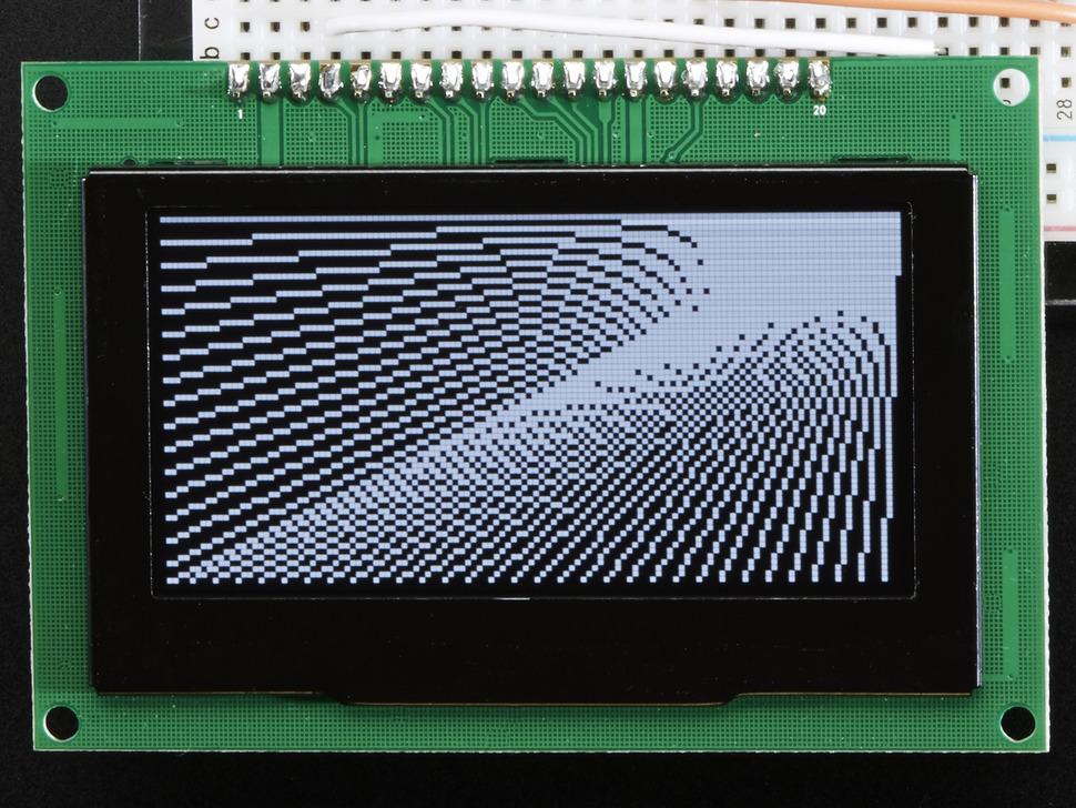 De SSD1325- driver ondersteunt twee communicatiemodi: 8-bit of SPI, waarbij de SPI-modus slechts 4 tot 5 draden nodig heeft. Het display vereist een 3,3V-voeding en 3,3V logic levels , met een meegeleverde breadboard -vriendelijke level shifter voor gebruik met 5V-logische apparaten zoals Arduino .